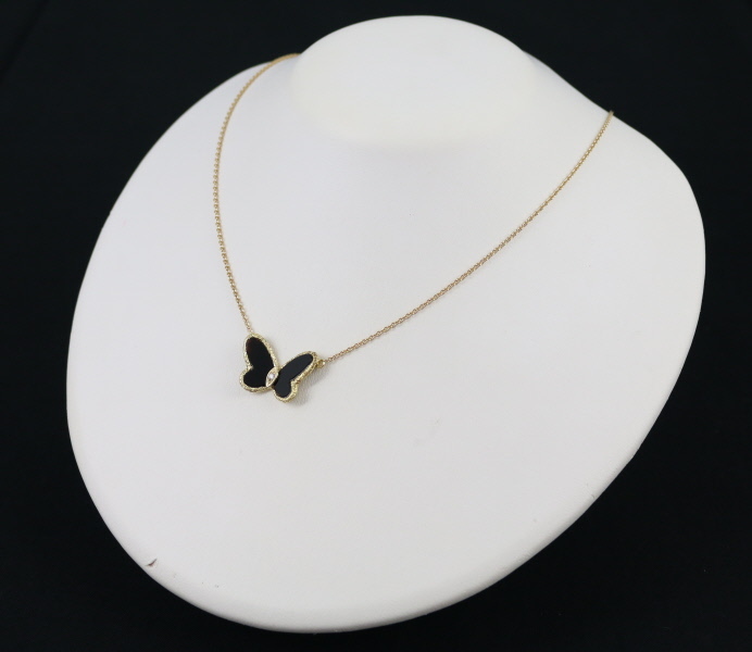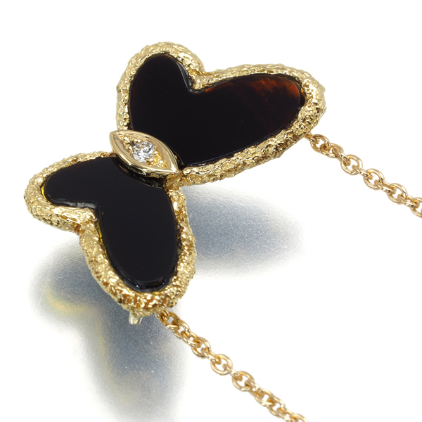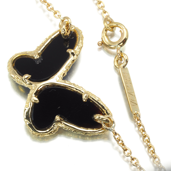 中央に厳選ダイヤを留め、オニキスの輝きを飾ったヴァンクリーフ&アーペルのパピヨンネックレスです。胸元に優雅なアクセントを与えてくれるハイジュエリーを是非どうぞ。 |