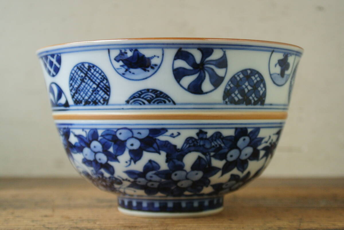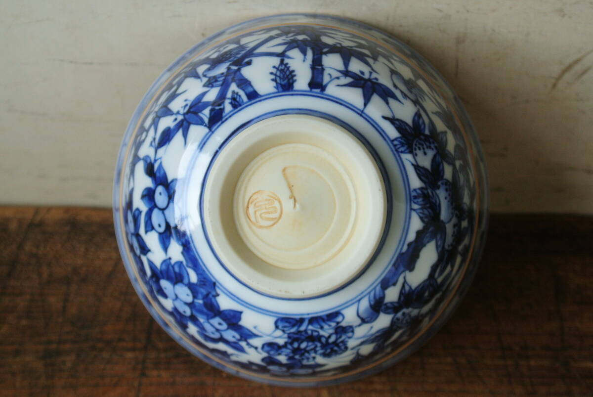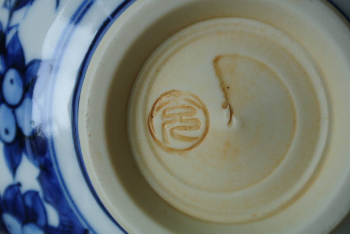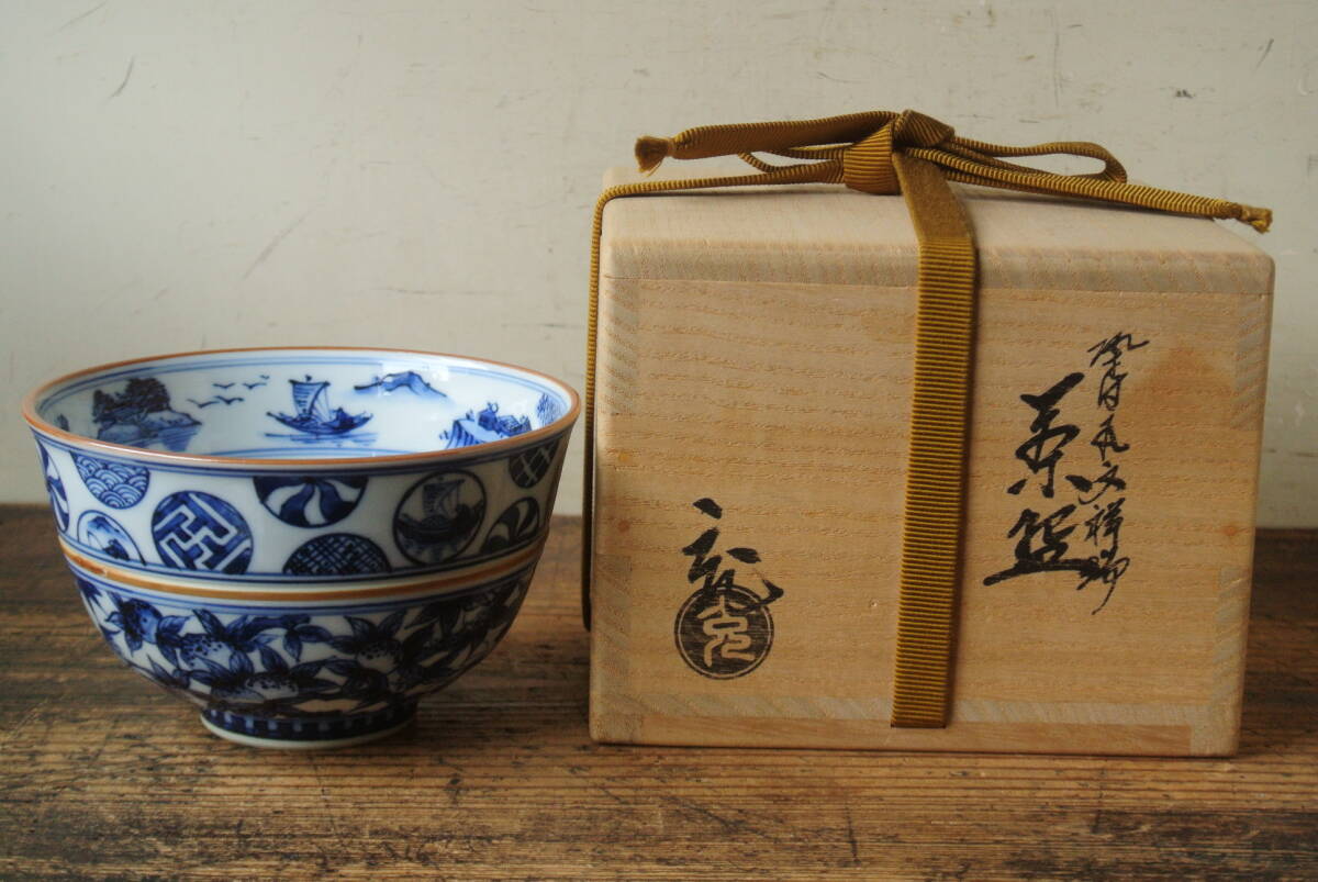 手塚充 染付丸紋祥瑞茶碗 共布 共箱 保証品