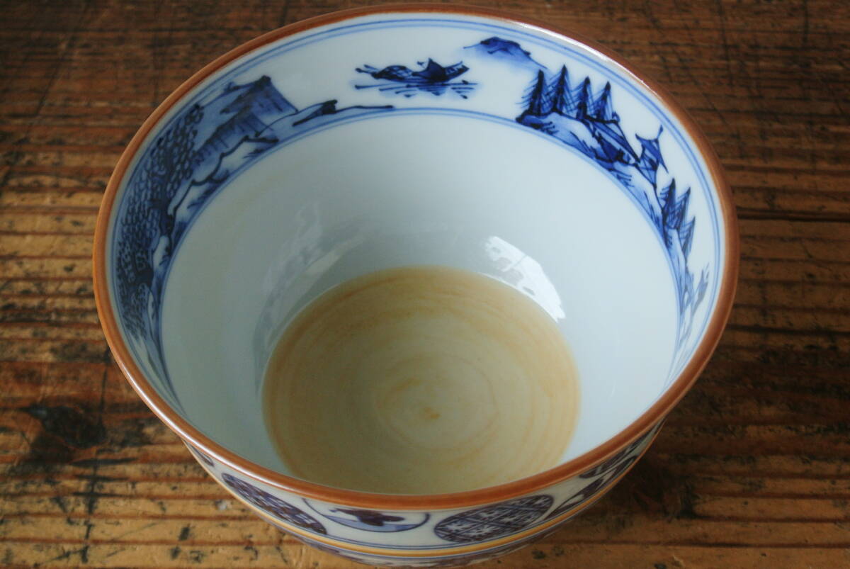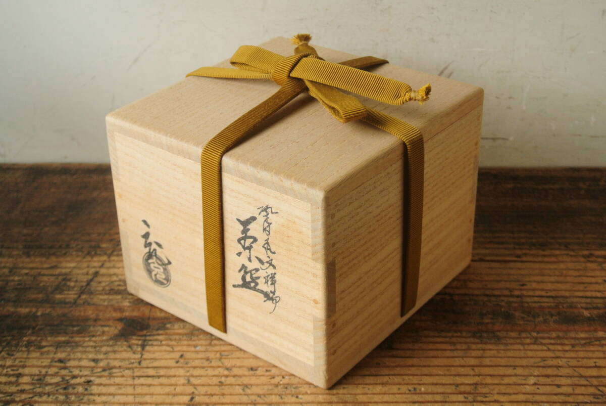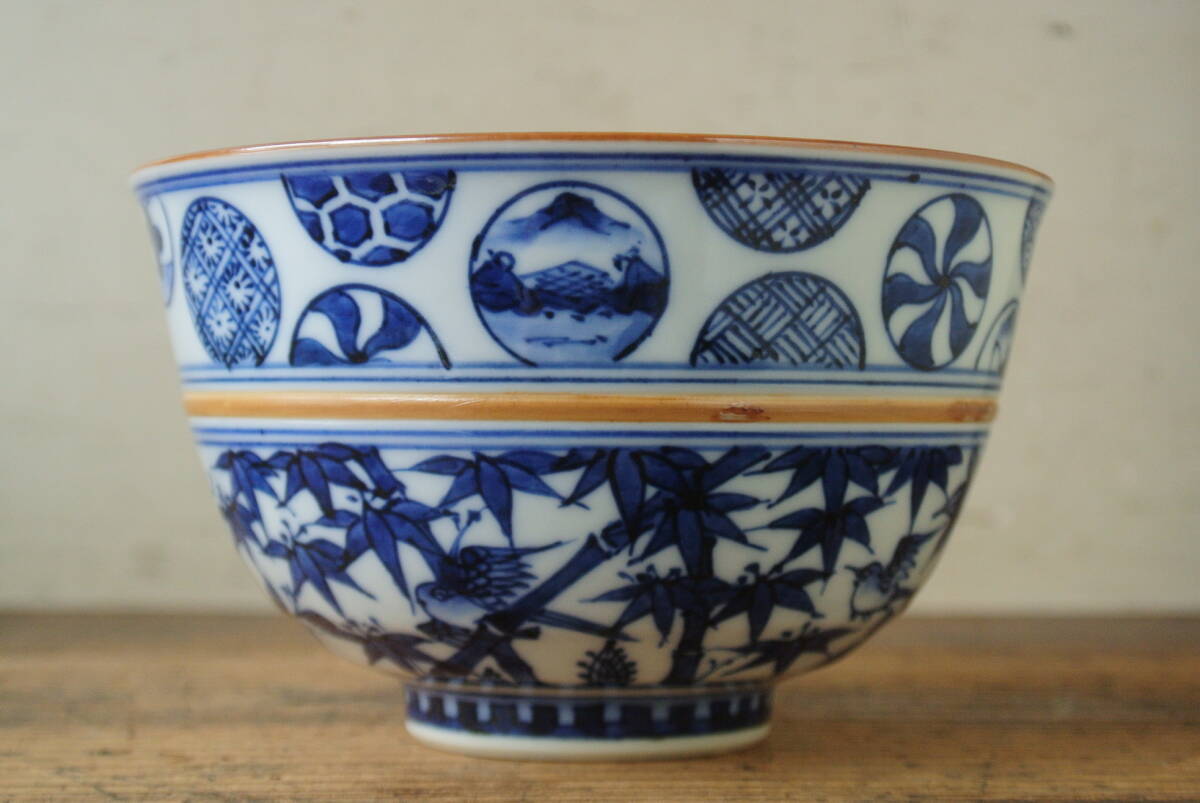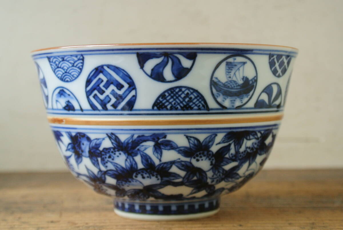 手塚充 染付丸紋祥瑞茶碗 共布 共箱 保証品