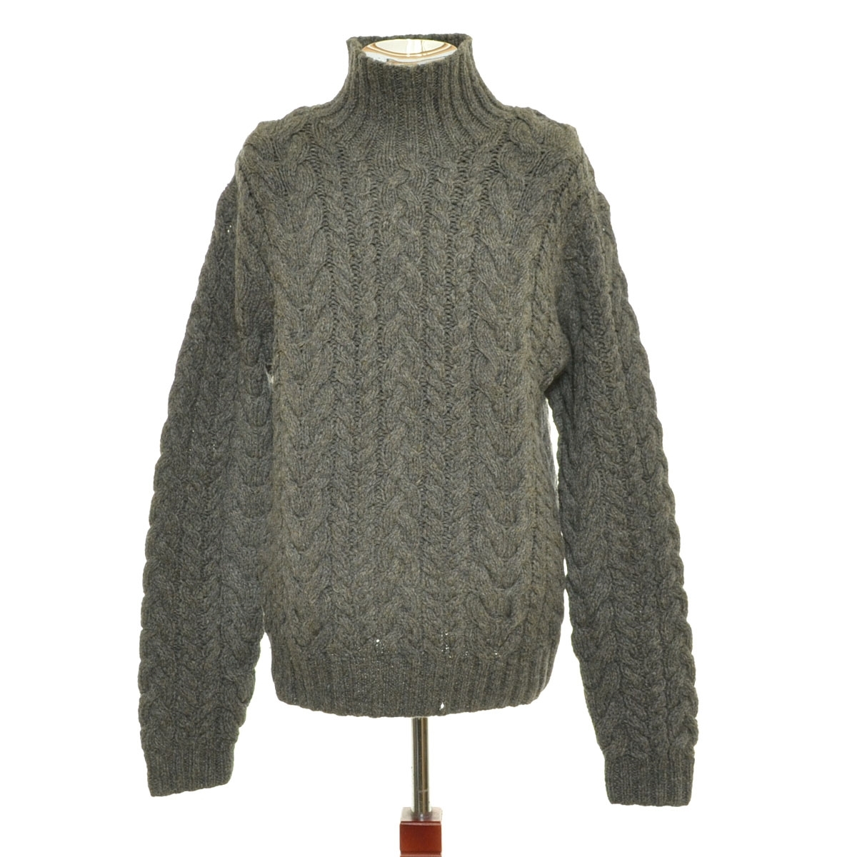 ●564393 POLO by RALPH LAUREN ポロ ラルフローレン ●ウールニット セーター ハンドニット ハイネック サイズM メンズ グレー