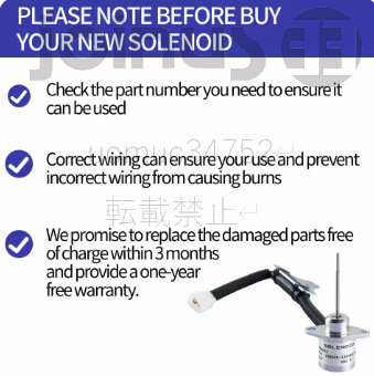 1503ES-12A5SUC9SLC24 燃料遮断ソレノイド 1G820-60022 1G820-60012 1G820-60020 SA-5156-12 クボタエンジン D722 D782 クボタショベル KX4用 1 KX4。 1-3 KX016