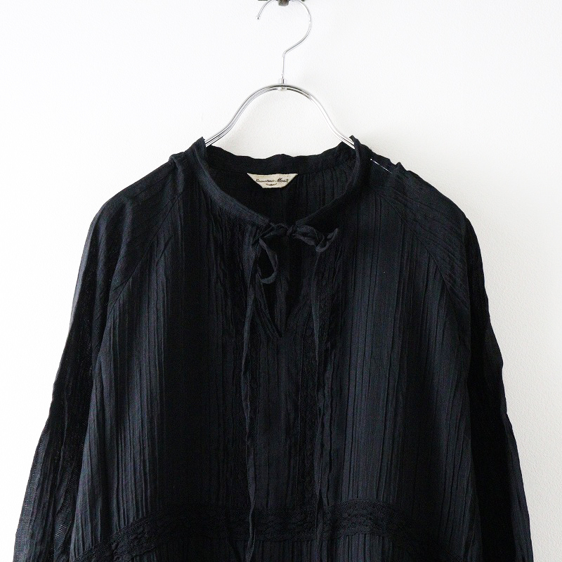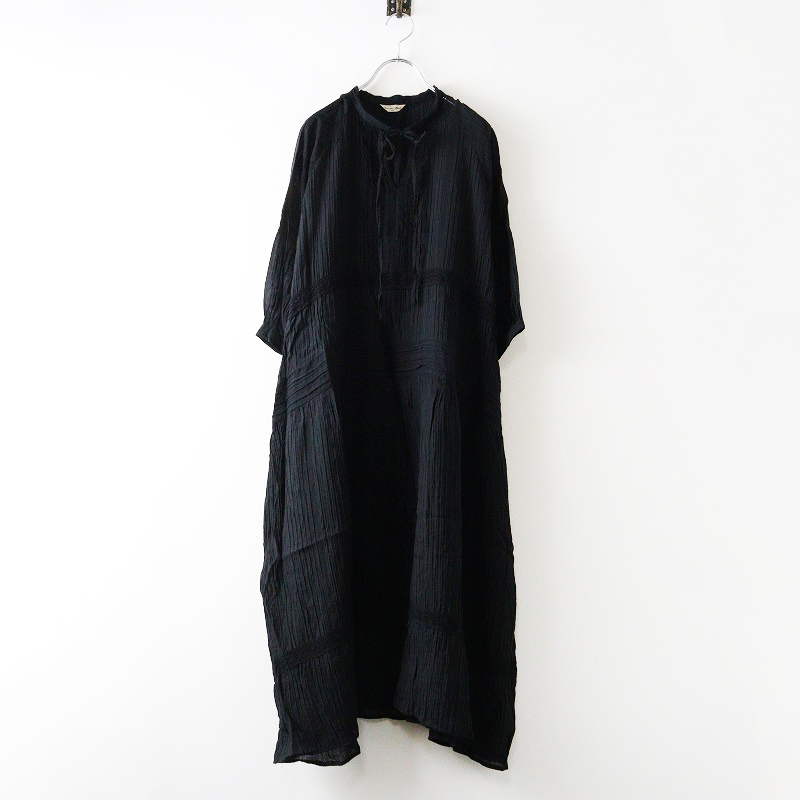 サマンサモスモス Samansa Mos2 SM2 レース切替ワンピース S|ブラック トップス ピンタック ギャザー シワ加工【2400014629644】