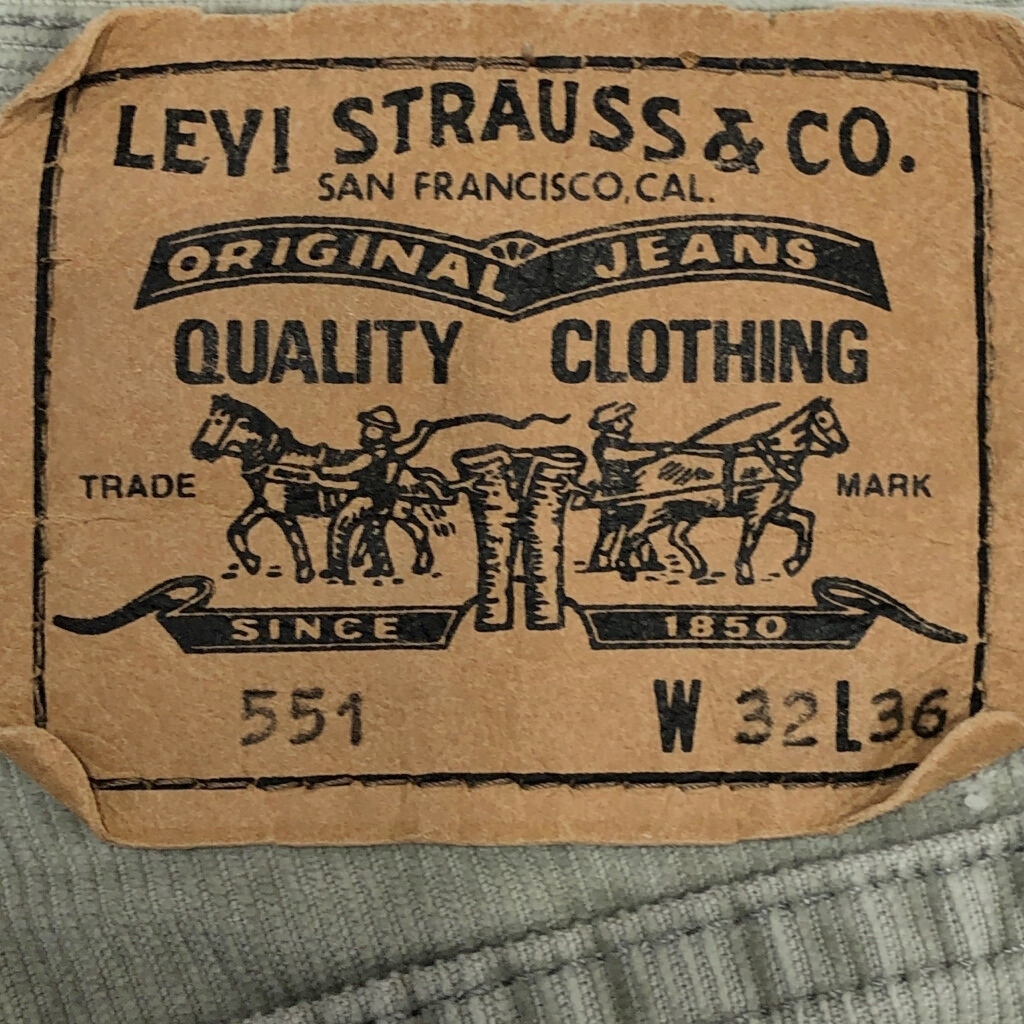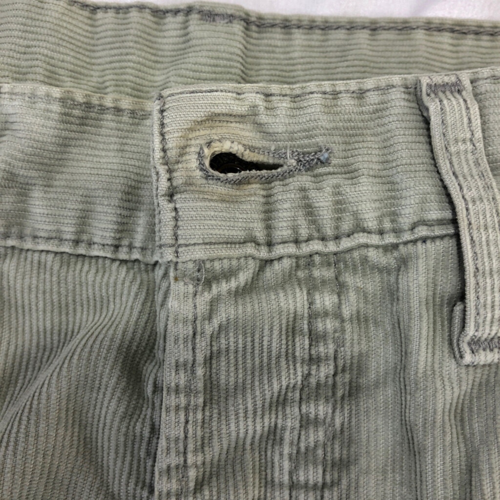 [商品管理番号] R9944 [ブランド] Levi's/リーバイス [サイズ] W32 L36 [実寸サイズ] ウエスト:約76cm 股上:約29cm 股下:約76cm わたり幅:約28cm 裾幅:約20cm [主な素材] 表地 : コットン [色] カーキ [仕様] 90年代 コーデュロイ 551 [状態] 汚れ:腰、ヒップ、もも、ひざ、スネ、ポケット内 ひざ裏 キズ:裾、股 裾裏地 破れ:裾 ひざ裏 特記事項:色褪せ、裾上げ | |||