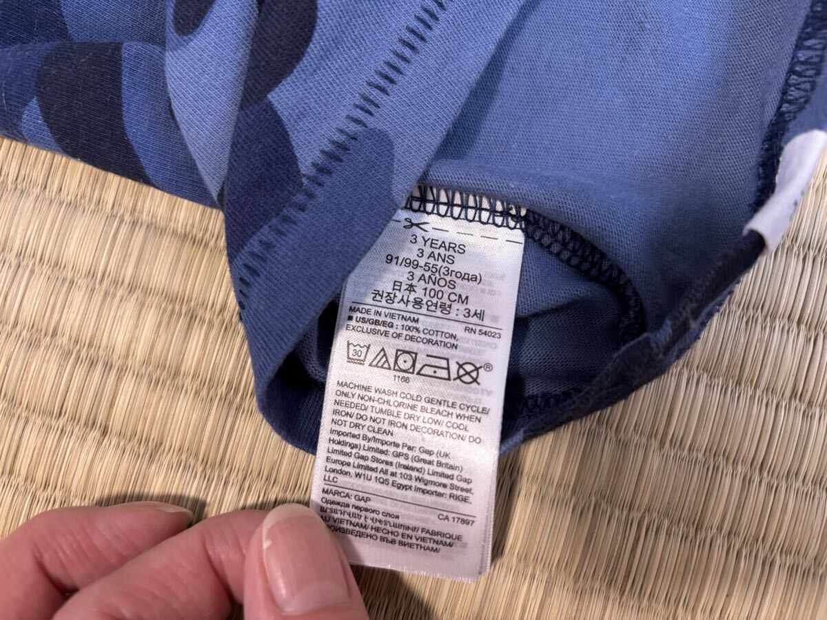 ☆ブランド・・・ギャップ ☆お色・・・ネイビー ☆サイズ・・・100 平置きの状態で、身幅・・・31cm 着丈・・・37cm 袖丈・・・32cm です。 素人寸法ですので参考程度にお考え下さい。 ☆ブルー系の迷彩柄の長袖Tシャツです。 ☆目立った痛みはありませんが、多少の生地の馴染み、色褪せ、細かい毛玉等があるかと思います。 ご理解の上ご入札下さい。 ☆細かいことをお気にされる方、神経質な方は入札をご遠慮下さい。 ☆自己紹介も必ずお読み下さい。
