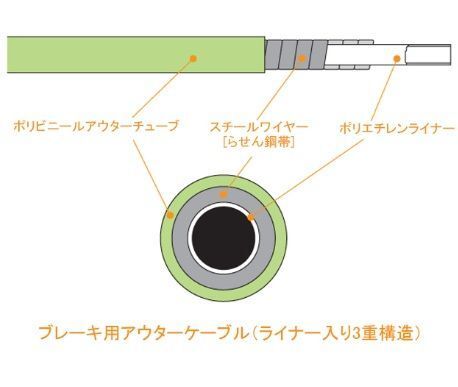 ・ライナー入り3重構造のブレーキ用アウターケーブル