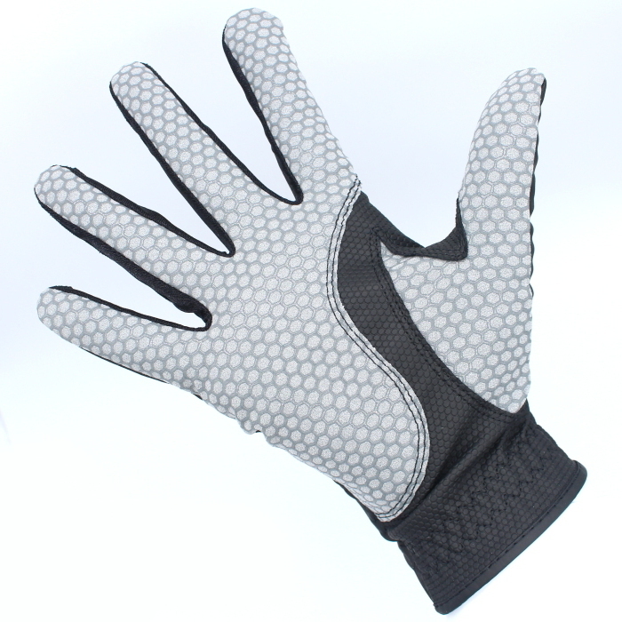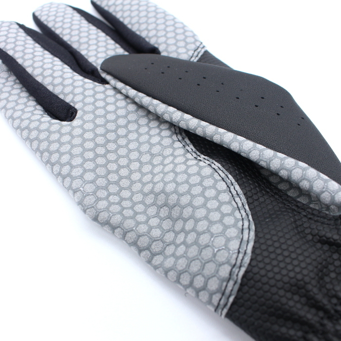 | 【驚異のグリップ力、心地よい伸縮性能】 ・シリコン樹脂加工の生地で、滑りを防止し、優れたグリップ力を発揮。 ・甲部分と指間部分に伸縮性に優れたストレッチ素材を使用。 ・悪条件下のプレイでもグリップを強力にサポートします。 | |