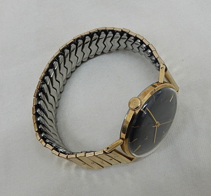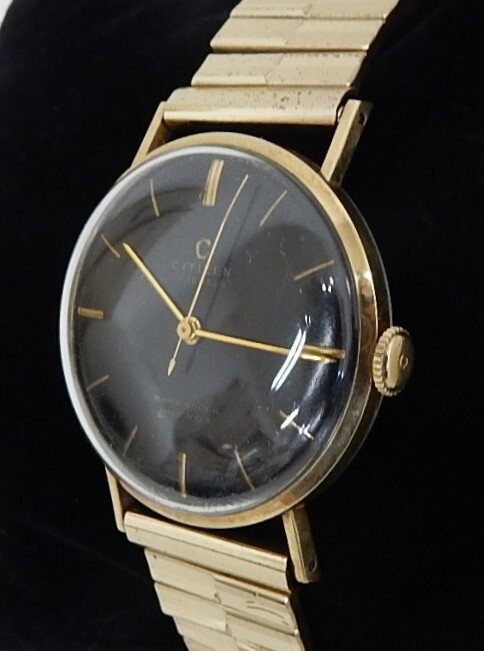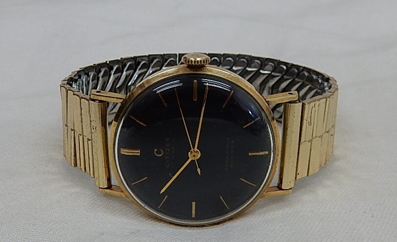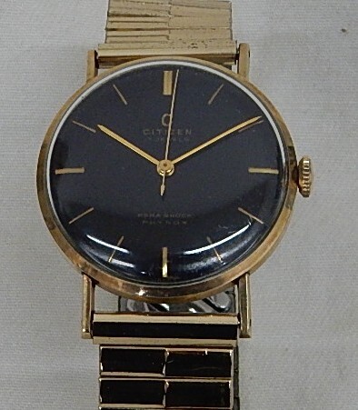 CITIZEN シチズン 17石 PARA SHOCK PHYNOX 手巻き 腕時計 金メッキ 黒文字盤 SENTER SECOND 50年代 ヴィンテージ