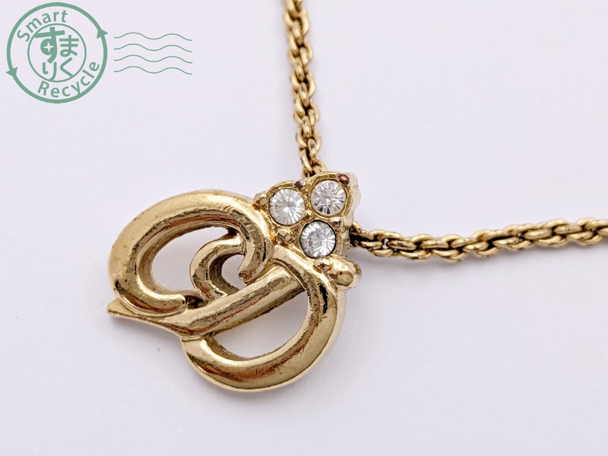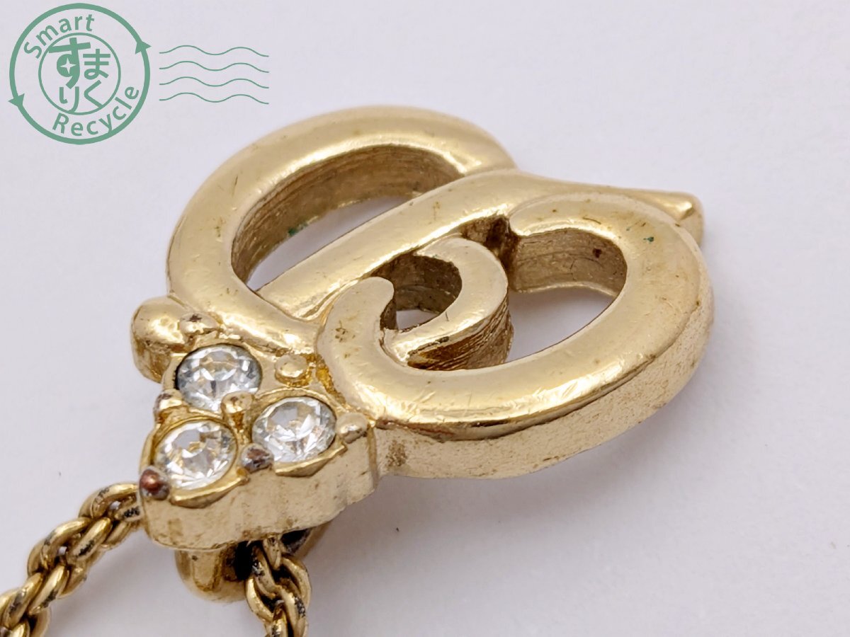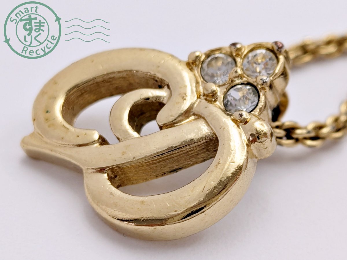 ★ Christian Dior クリスチャン・ディオール ネックレス ペンダント CD ロゴ 筆記体 ストーン ゴールドカラー アクセサリー | |||