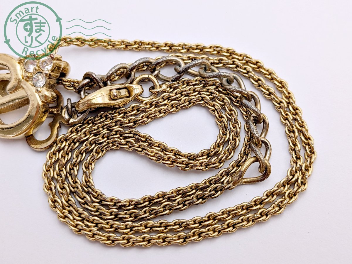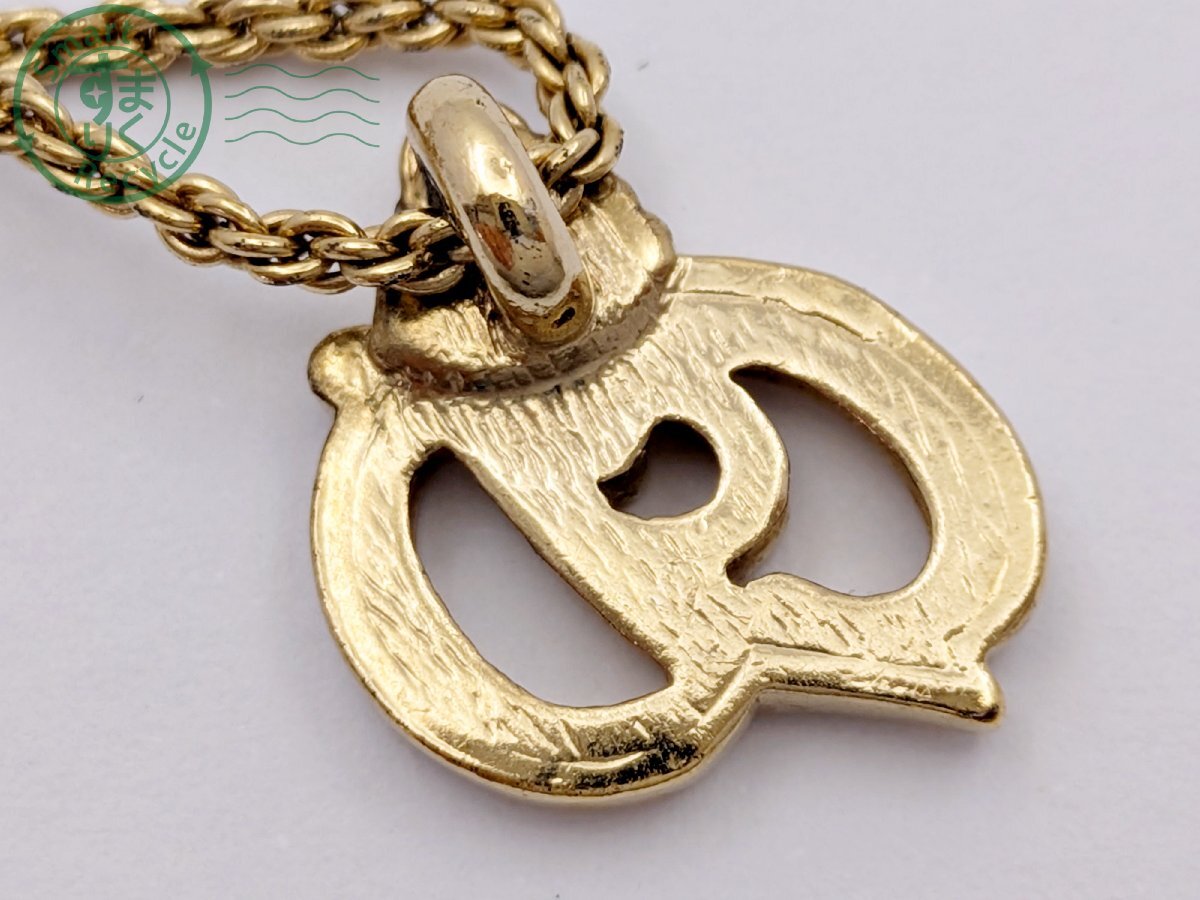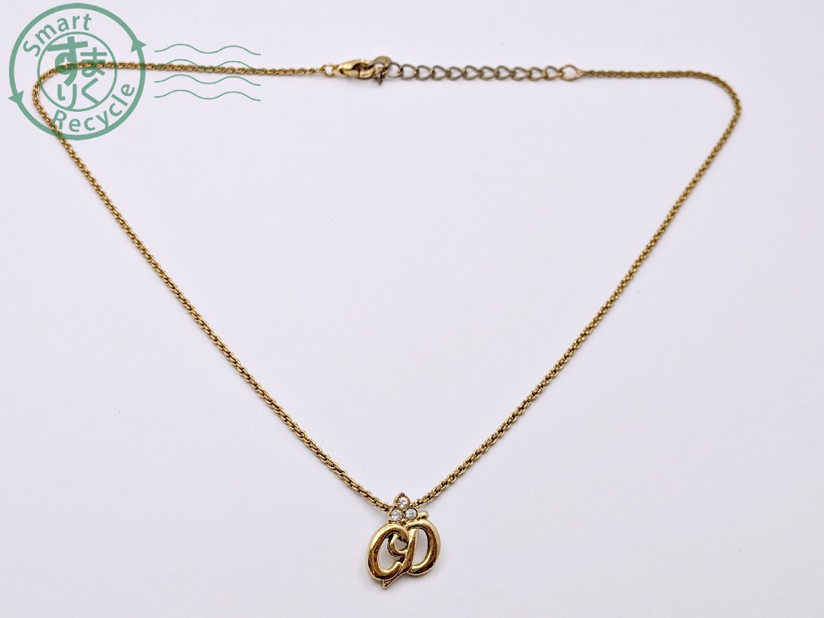 ★ Christian Dior クリスチャン・ディオール ネックレス ペンダント CD ロゴ 筆記体 ストーン ゴールドカラー アクセサリー | |||