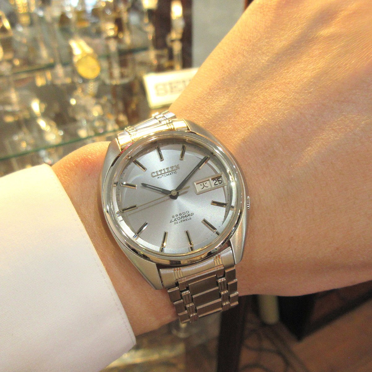 シチズン 1972年 ヴィンテージ 4-770633Y レオパール28800 アイスブルー文字盤 デイデイト 37mm メンズ 自動巻 時計 SS cal.7710