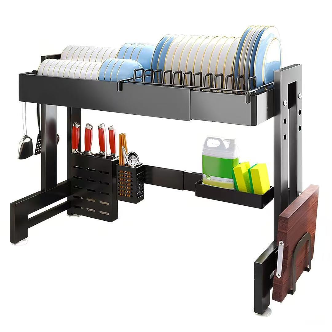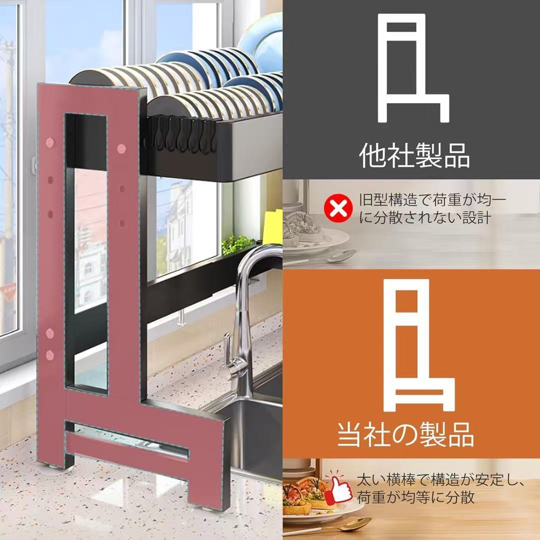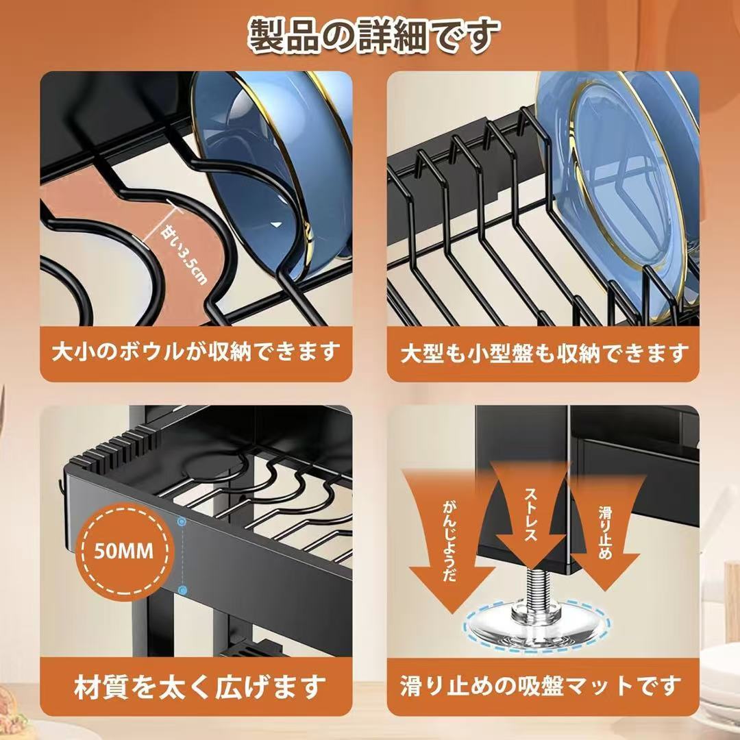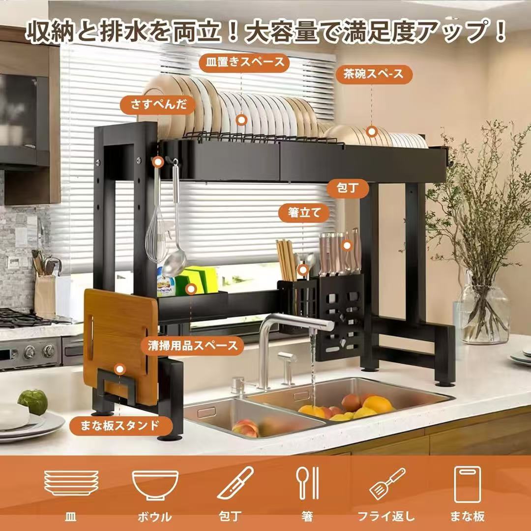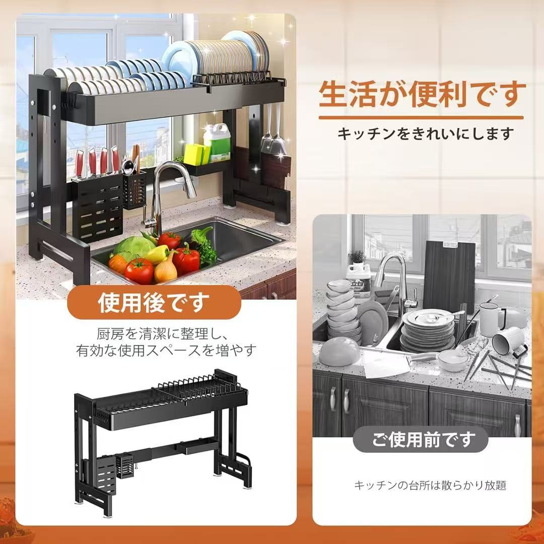 水切りラック シンク上 伸縮 横置き ステンレス 食器水切り 乾燥 大容量 洗い物ラック ディッシュラック キッチン 水切りカゴ 包丁スタンド まな板立て 皿立て 多機能収納 組み立て簡単