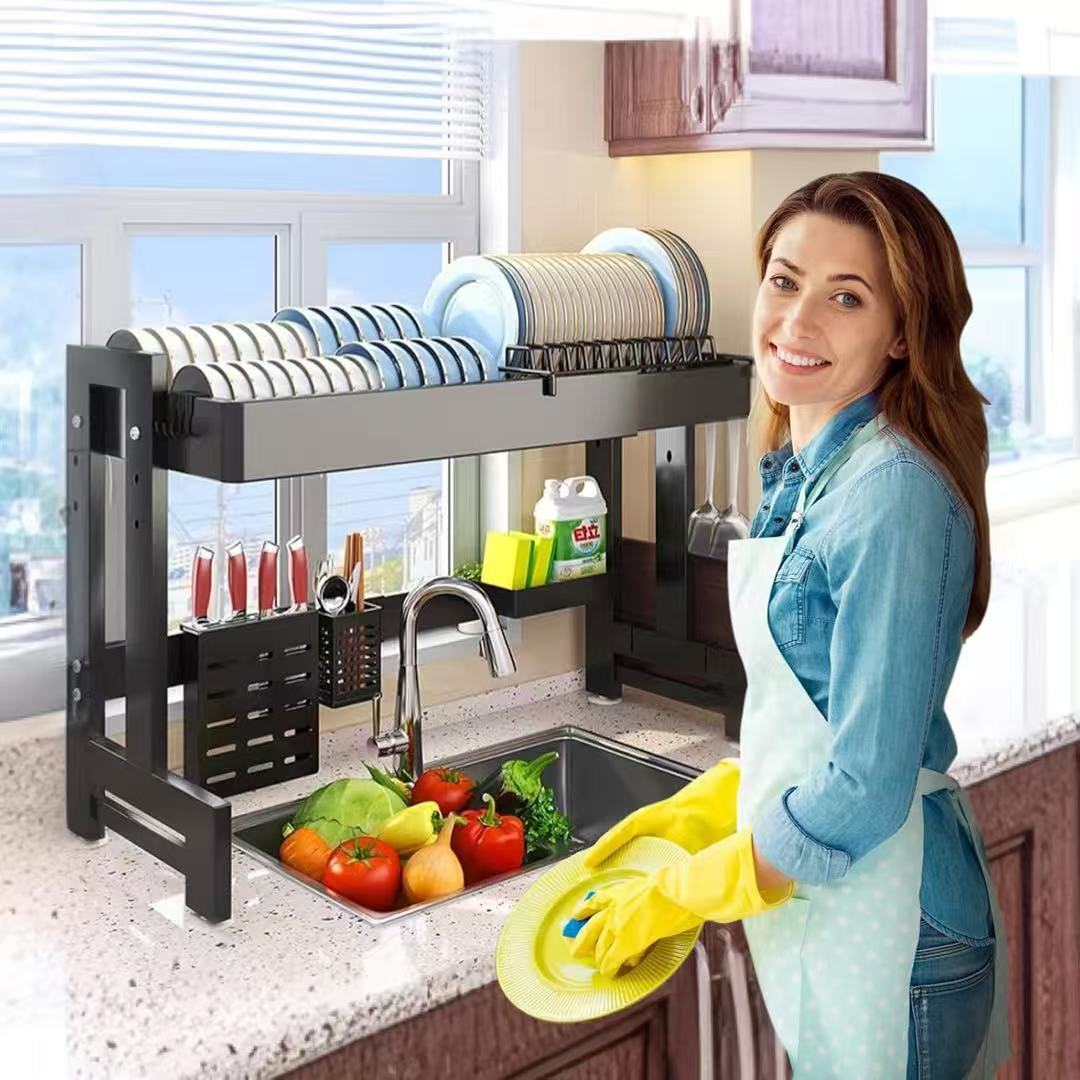 【5分で完了の簡単設置】このラックには詳細な取付手順が付いています。マニュアルまたはビデオに従い、ネジとレンチのみを使用して数分で簡単に組み立てることができます。工具は必要ありません。シンク上水切りラックならではの省スペース性をそのままに、プロ級の機能性を実現しました。