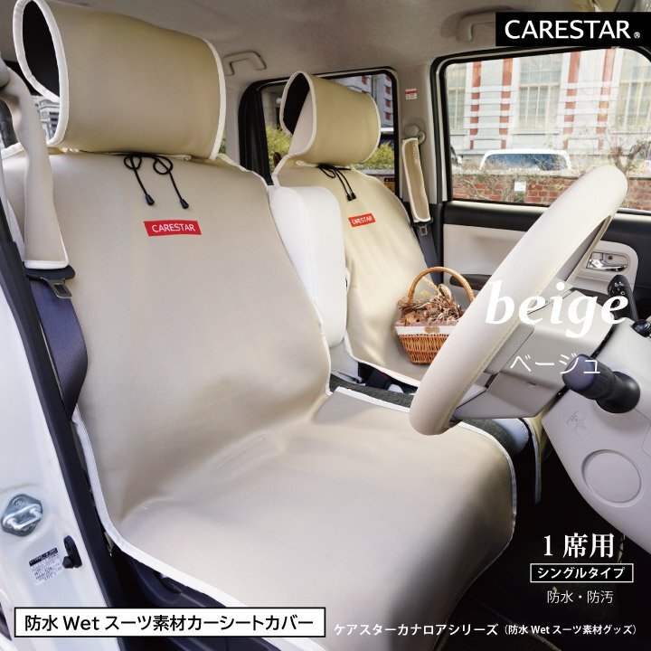 シートカバー 防水 運転席用 助手席用 ベージュ カナロア シングル ウェットスーツ素材 かわいい ペット 汎用 洗える CARESTAR ZBKW-SCF00