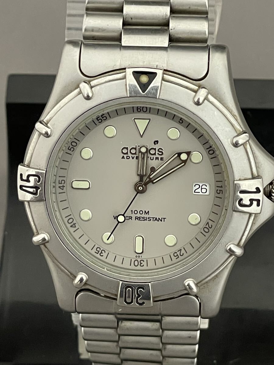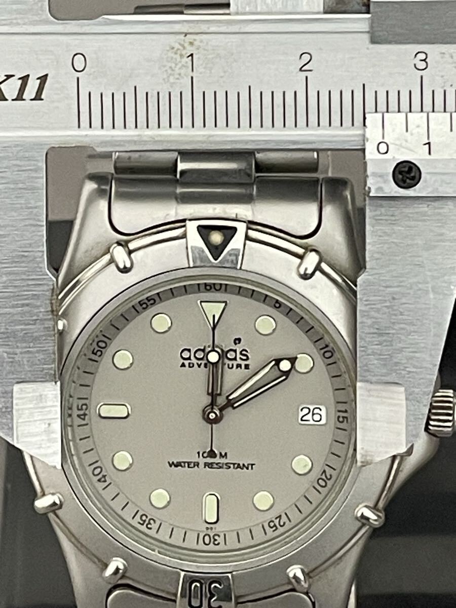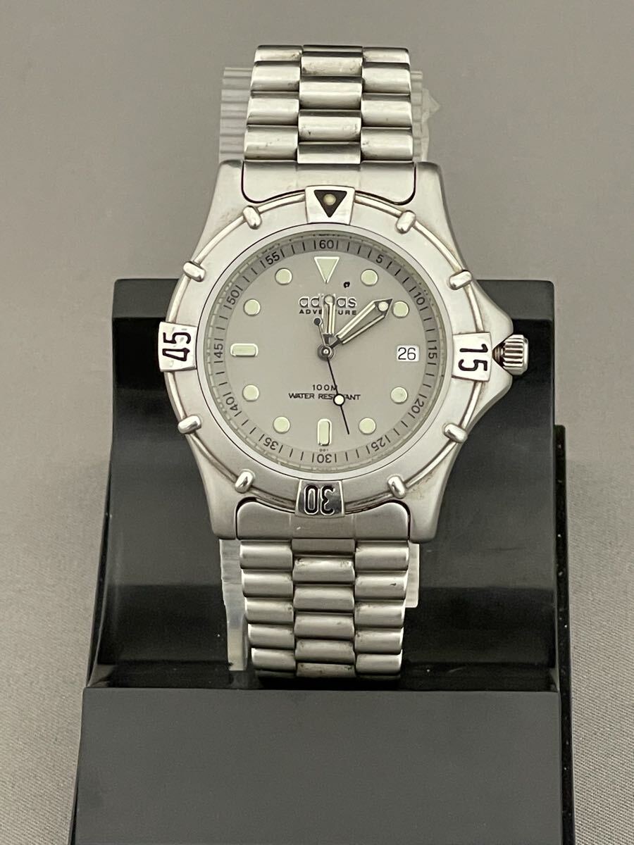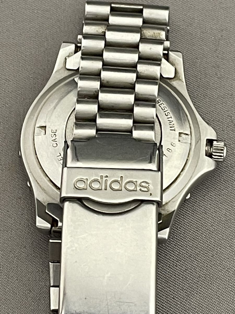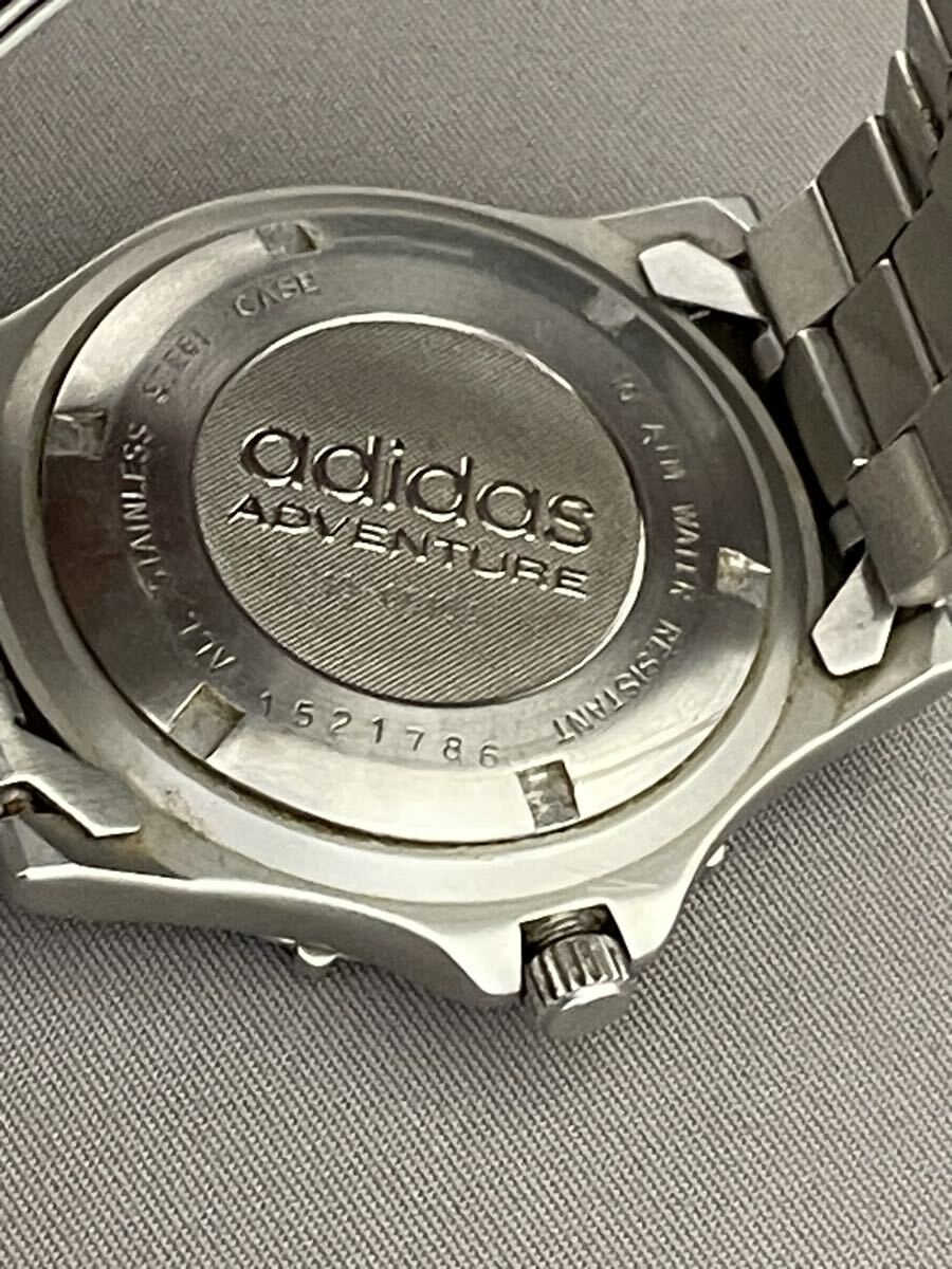 Adidas クォーツ 腕時計です。時計動いていますが詳しく動作確認してないためジャンク品扱いでお願いします。ノウクレームノウリターンでお願いします。