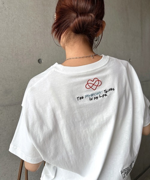 参考商品名:ランダムエンブロイダリーロゴ半袖Tシャツ