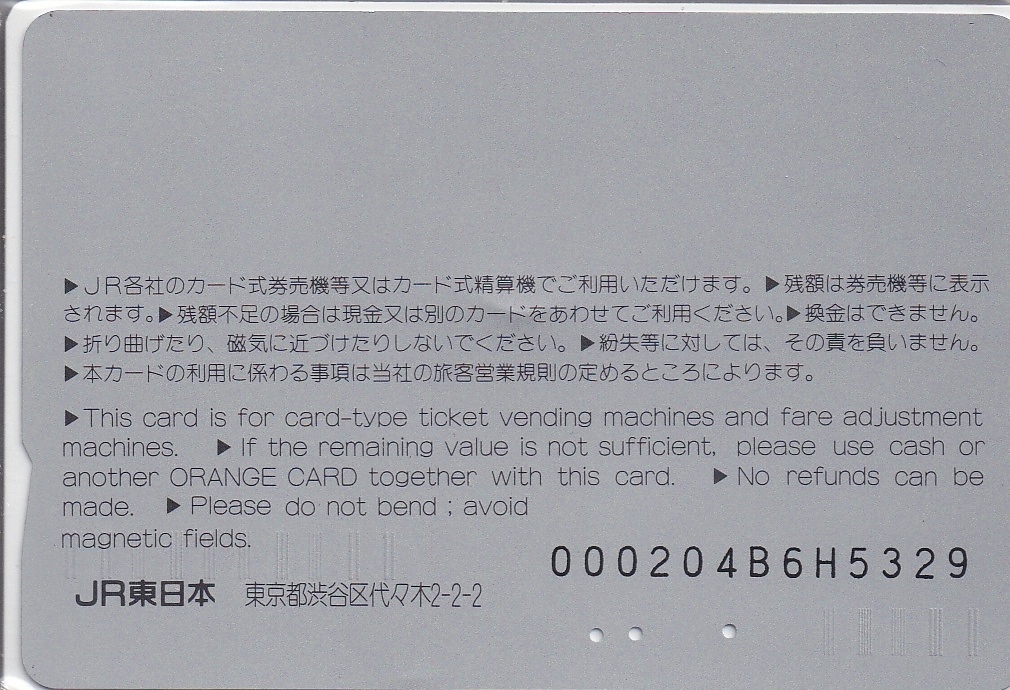 使用済フリーオレンジカード JR東日本 電設工 日本電設工業株式会社 EastI 1000円券 説明文参照