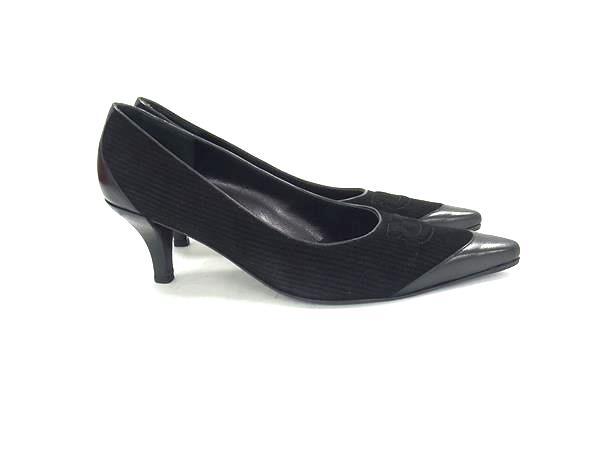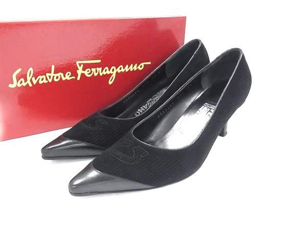 ■美品■ Salvatore Ferragamo フェラガモ DQ89284 スエード ヒール パンプス 表記サイズ 6 1/2 (約23.5cm) 靴 ブラック系 DJ6204