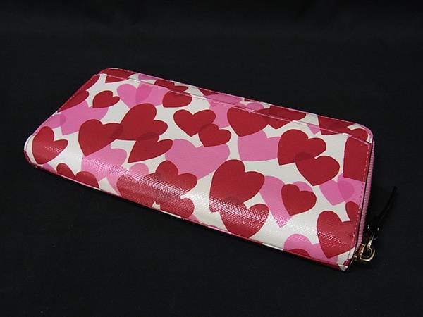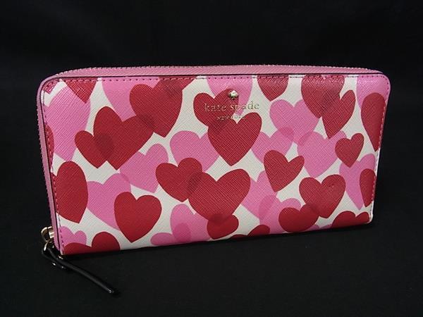 ■美品■ kate spade ケイトスペード レザー ハート柄 ラウンドファスナー 長財布 ウォレット 札入れ 小銭入れ レッド系 DG4921