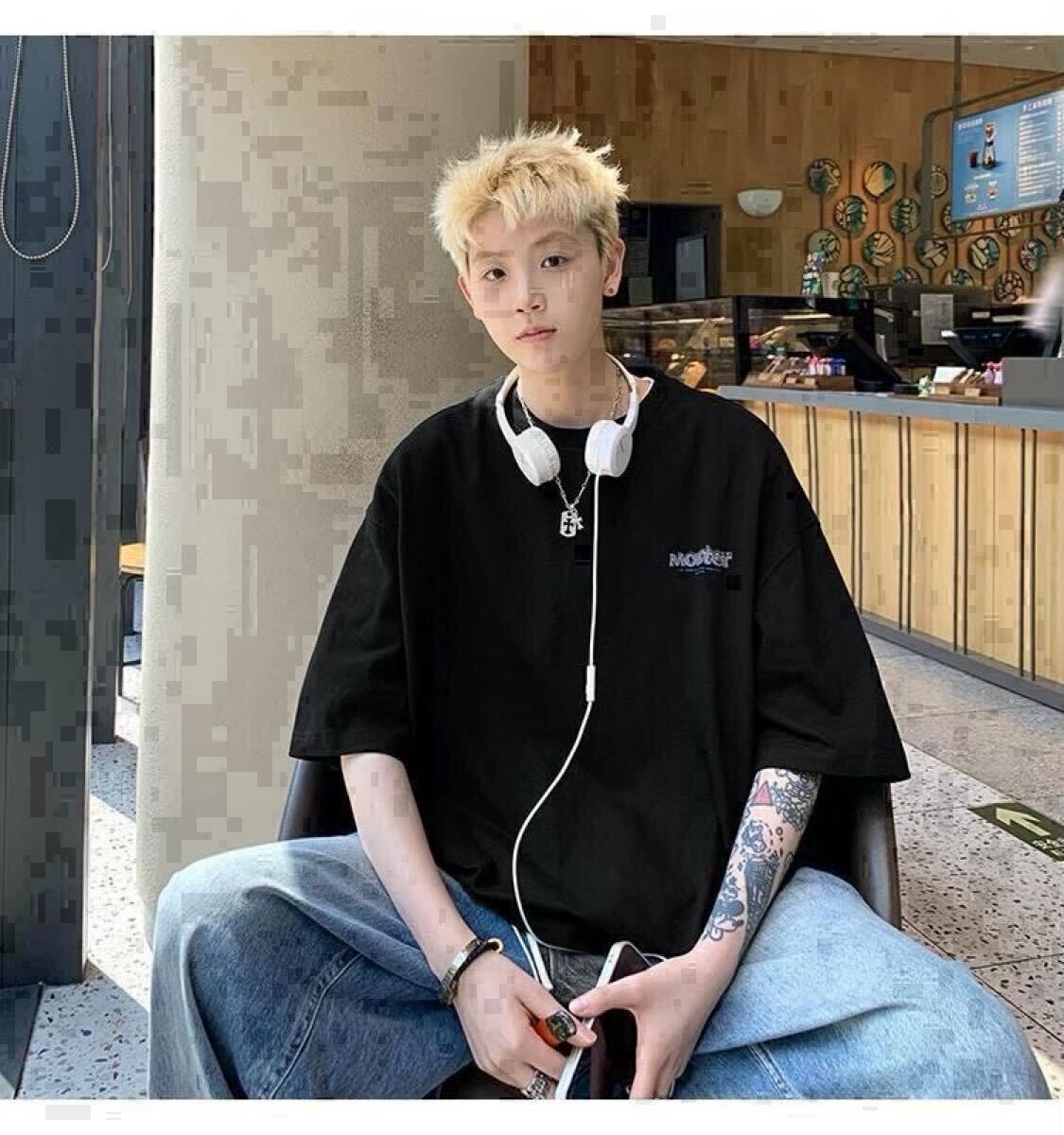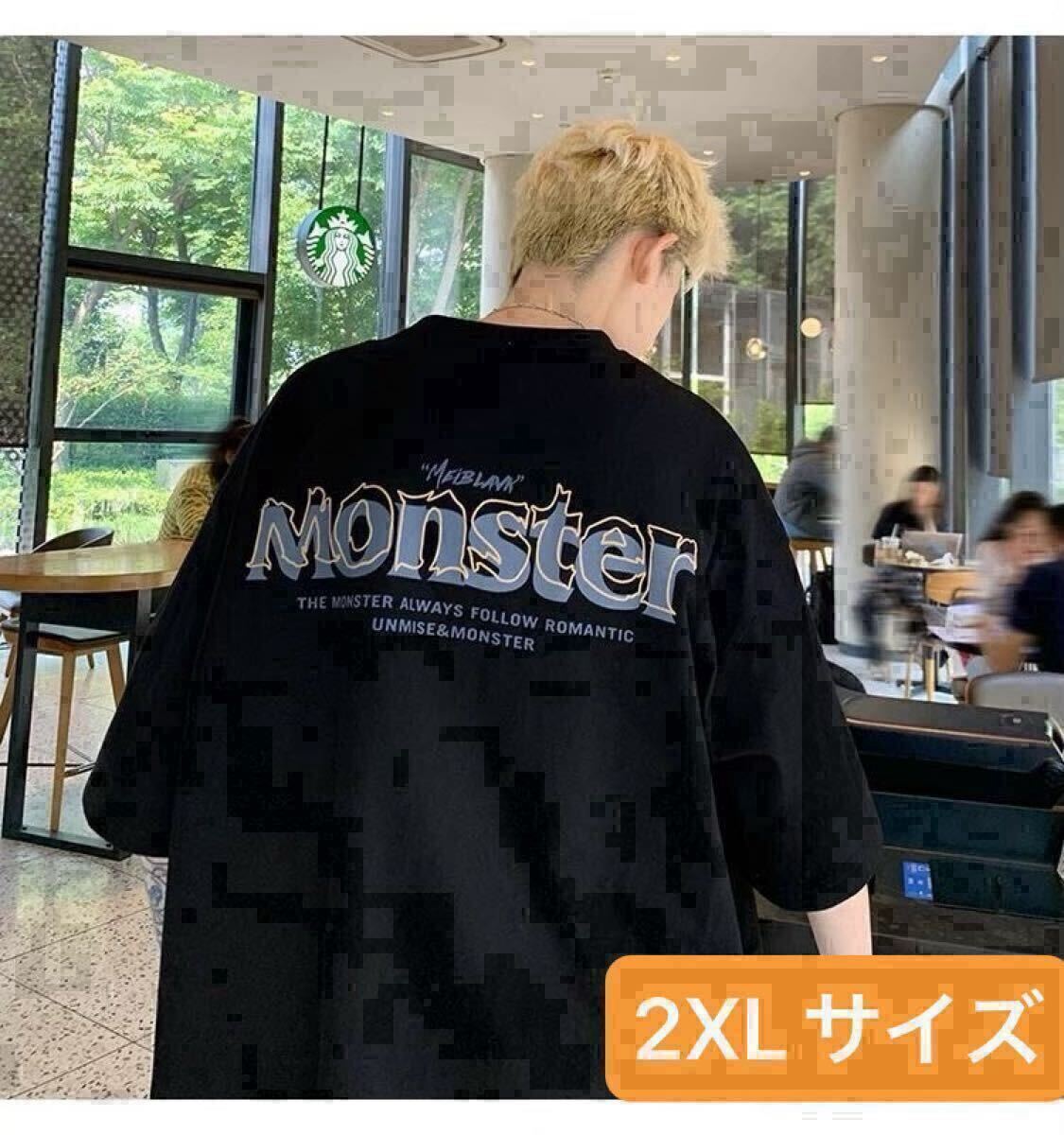 メンズ Tシャツ 半袖 夏服 オーバーサイズ バックプリント ストリート 黒 ブラック 2XL