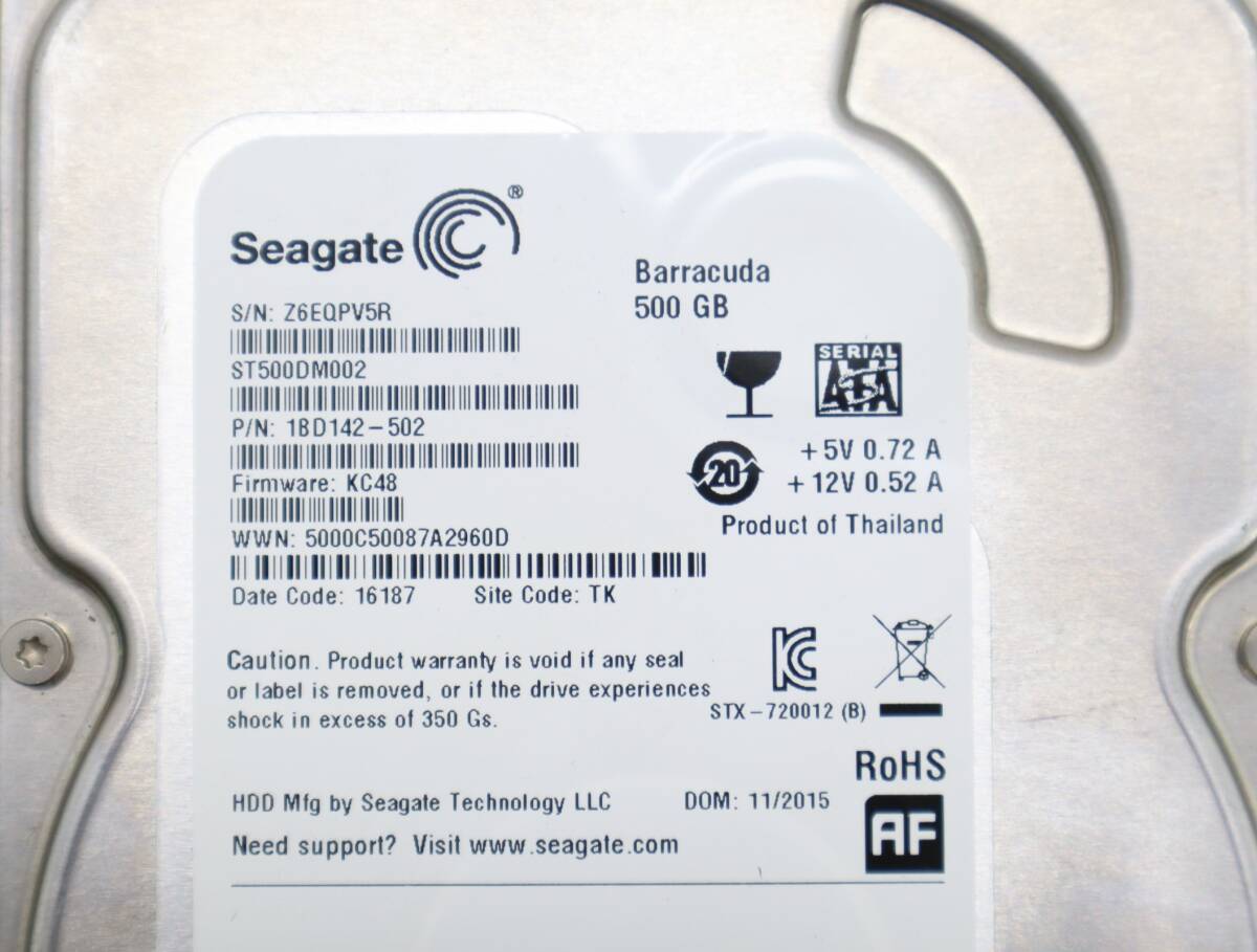 ∨500GB フォーマット済み|内蔵型 3.5インチ HDD|Seagate シーゲート ST500DM002 | ハードディスク SATA ■O0238