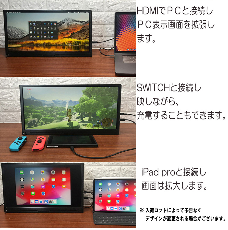 外部入力 | HDMI:1系統 USB TYPE C:1系統 miniDP:1系統 |