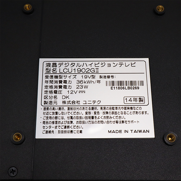 爆買/【中古】液晶テレビ/ユニテク/一人暮らし/19V/寝室/省エネ/ヘッドホン端子/送料込み特価品/現品限り/LCU1902G2/TB04-023