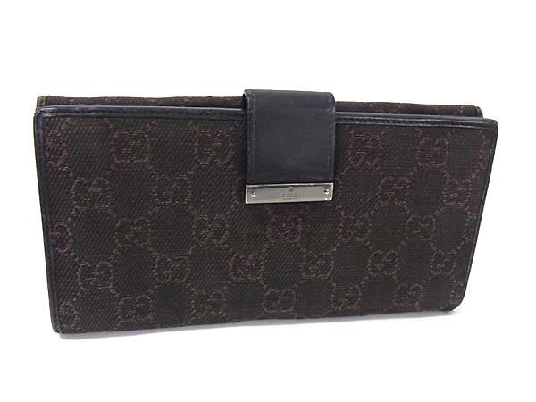 GUCCI グッチ 74210 1147 GG柄 GGキャンバス×レザー Wホック 二つ折り 長財布 ウォレット メンズ ブラウン系×ブラック系 DK6586