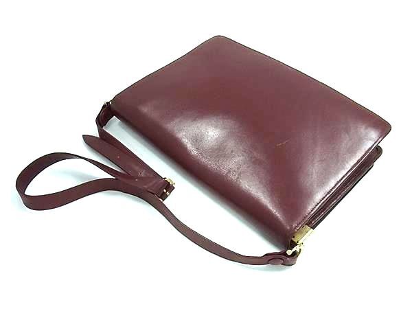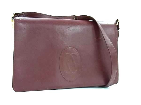 1円 Cartier カルティエ マストライン レザー クロスボディ ショルダーバッグ 斜め掛け レディース ボルドー系 FS5383
