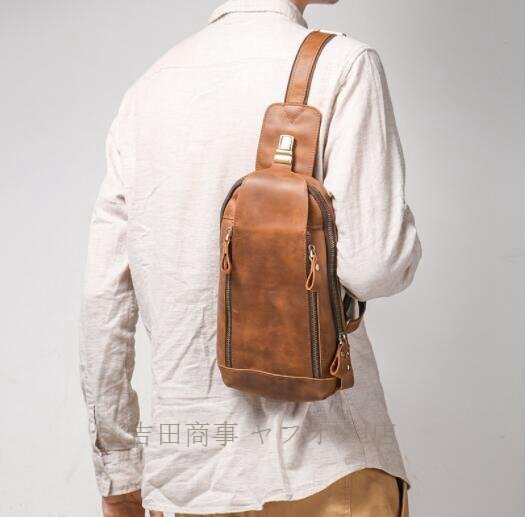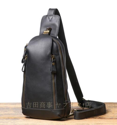 ☆新品実物写真 左右肩掛け替え 本革 メンズ ボディバッグ 革 レザー ワンショルダーバッグ おしゃれ 大容量 通勤通学用 自転車 多機能 黒