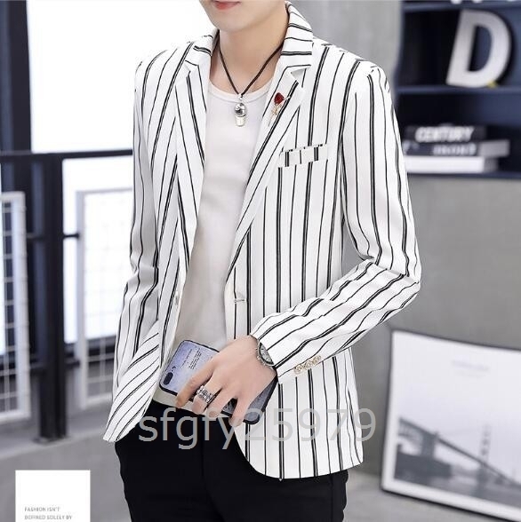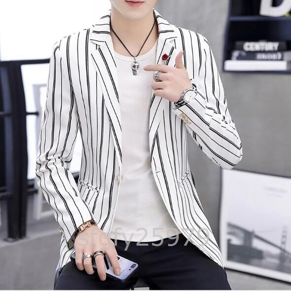 A505☆新品テーラードジャケット ビジネスジャケット ブレザー ストライブ柄 通勤コート 紳士フォーマル カジュアル細身 XL~3XL選択白