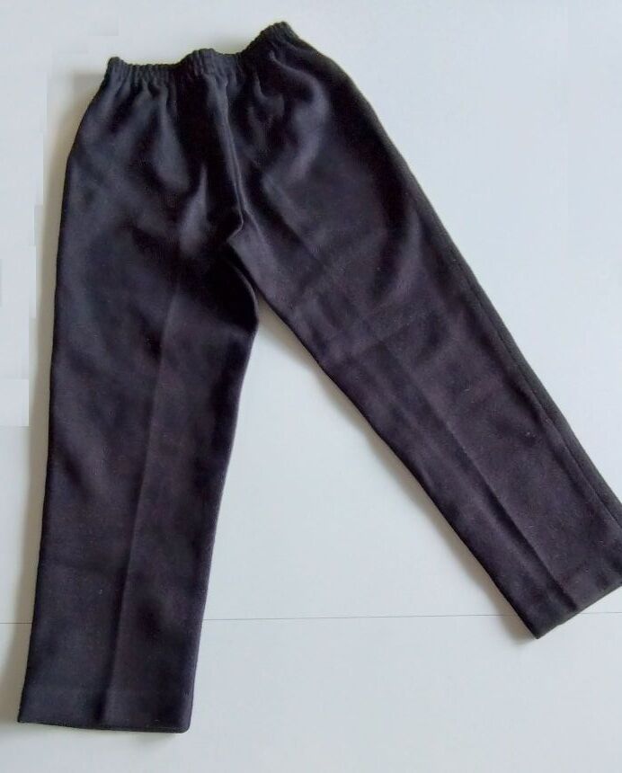 シンプルなゴムウエストのズボンです。 毛玉・毛羽立ちが少しありますが、 目立つ汚れは見当たりません。 カラー;黒色 素材;ポリエステル50%・アクリル45%・毛5% サイズ;M ウエスト約55cm前後・ズボン丈約84cm、股下約57cm |
