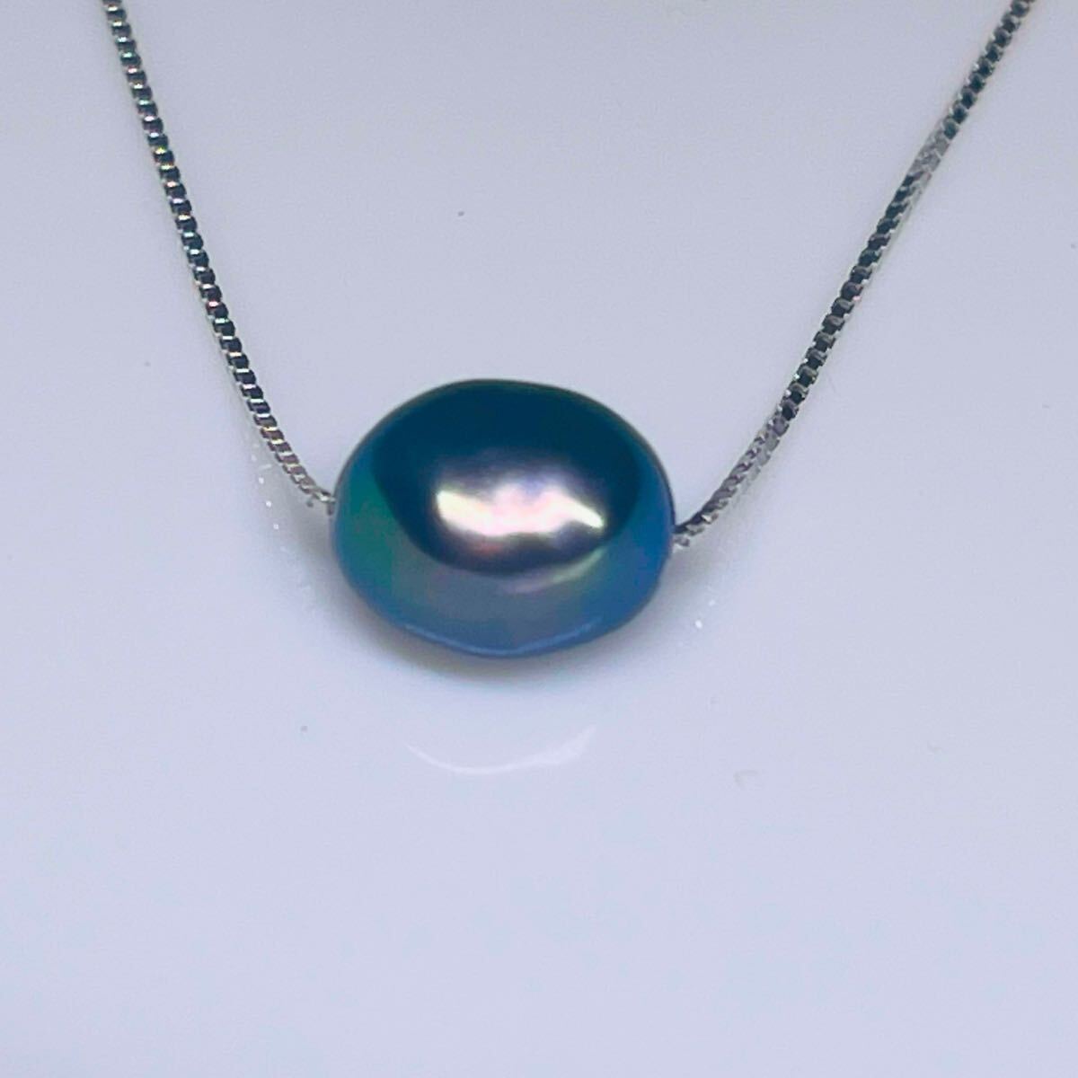 真珠の中から綺麗な色が浮かび上がっていますよ(^。^) ピーコックグリーンの特徴は、孔雀の羽のようにボディカラーが深い緑色で、干渉色がパープル色を持つ大変美しい真珠です。