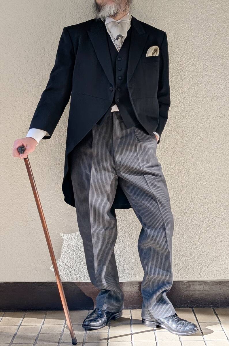 80’sジャパンヴィンテージ モーニング三つ揃え テールコートベストパンツ3ピース /日本昭和古着モードブライダルフォーマル成人式ΓMT