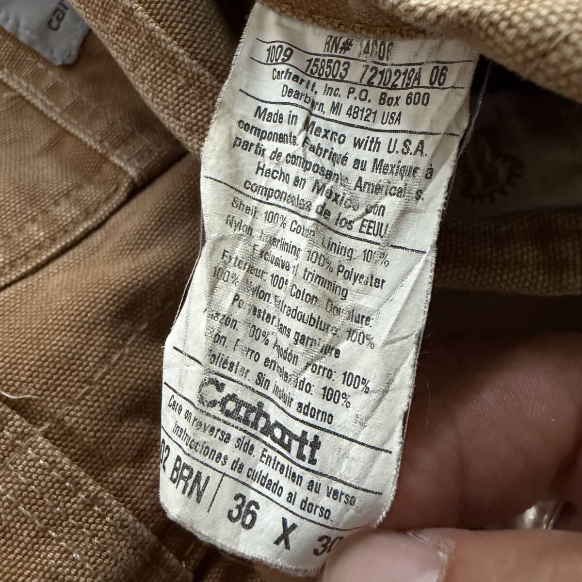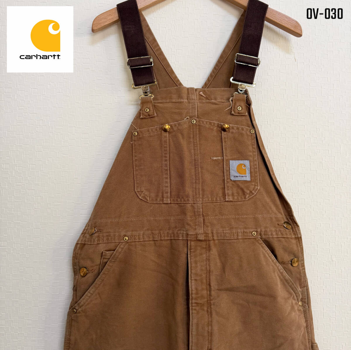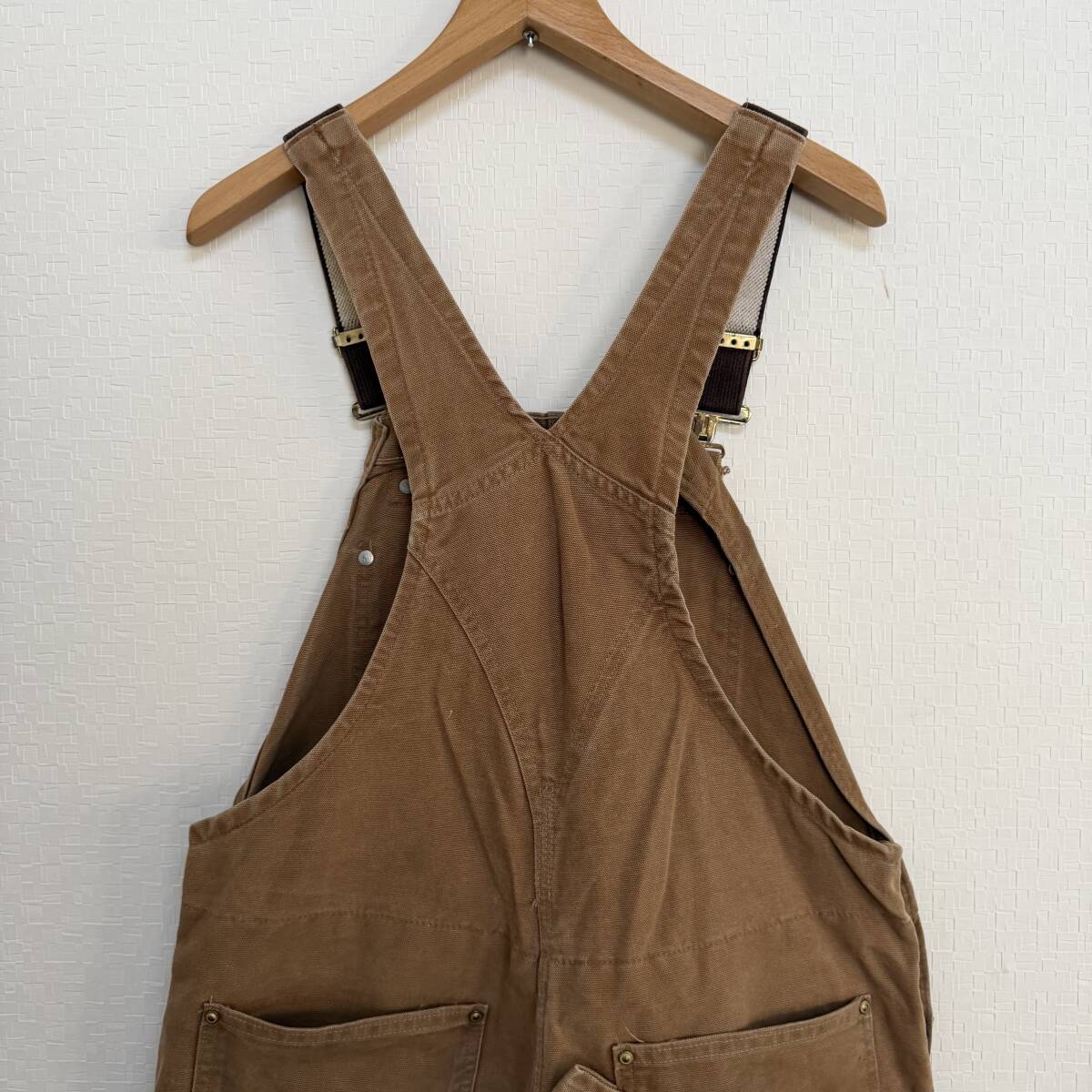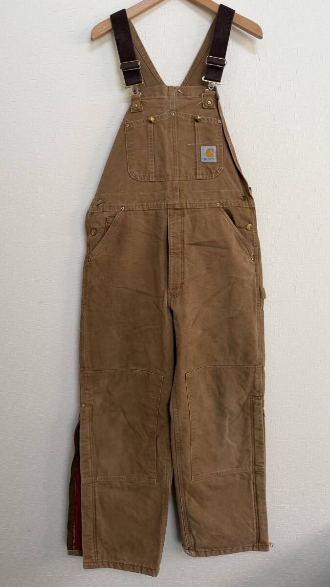 USA古着 Carhartt オーバーオール カバーオール ブラウン ダブルニー キルティング 36x30