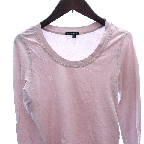 セオリー Theory カットソー Tシャツ ロンT Uネック 長袖 2 M ピンク /AU レディース