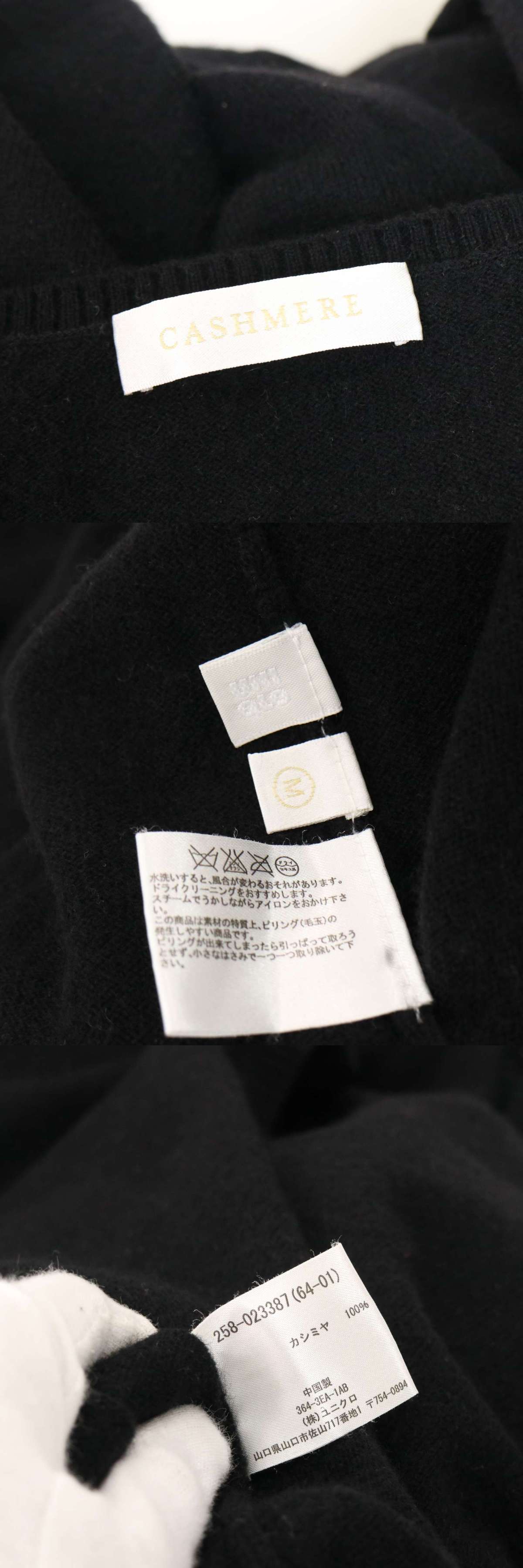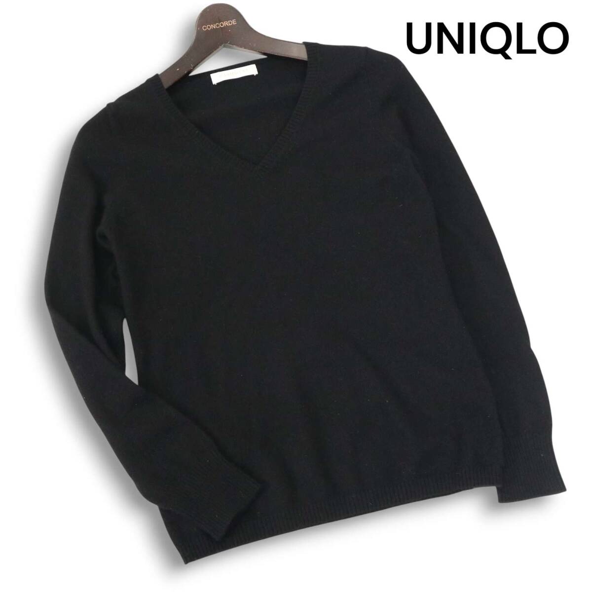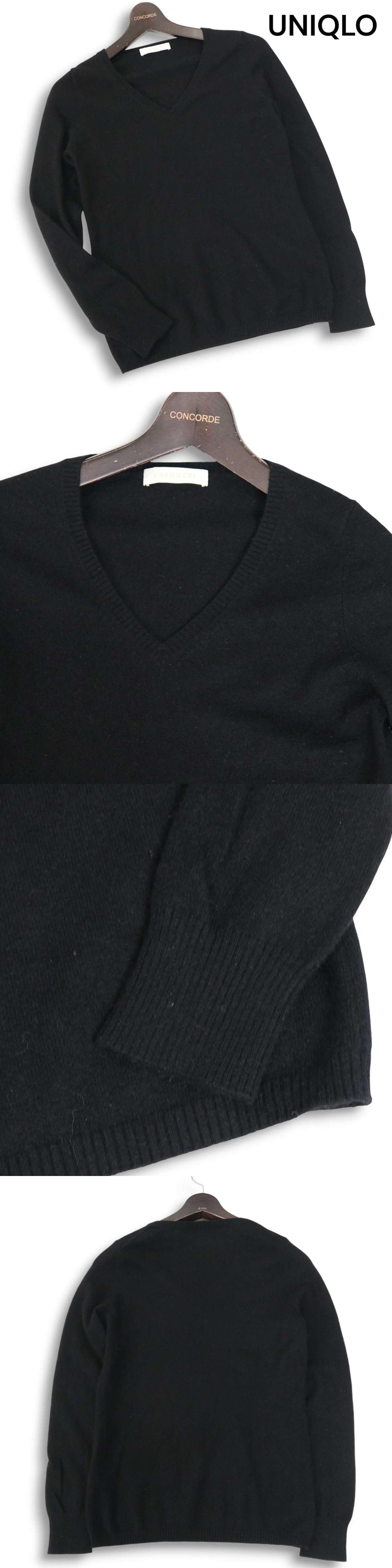 UNIQLO ユニクロ 秋冬 高級 カシミヤ100%★ Vネック ニット セーター Sz.M レディース 黒
