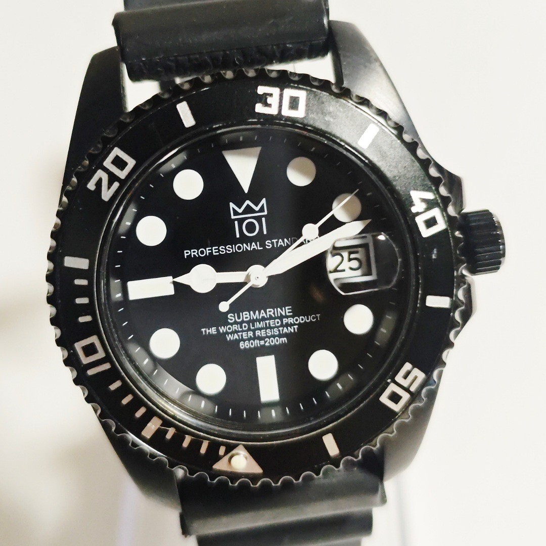 動作品 101 ヒャクイチ ダイバーズウォッチ QZ デイト ブラック文字盤 電池交換済み クォーツ アナログ メンズ腕時計 稼働品 セ300