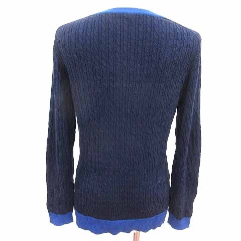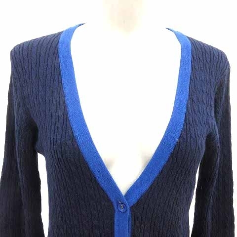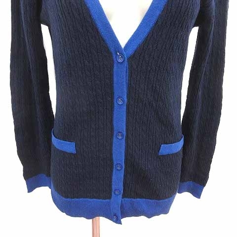 エル ELLE カーディガン ニット Vネック ケーブル 長袖 38 M 紺 ネイビー 青 ブルー /YK レディース
