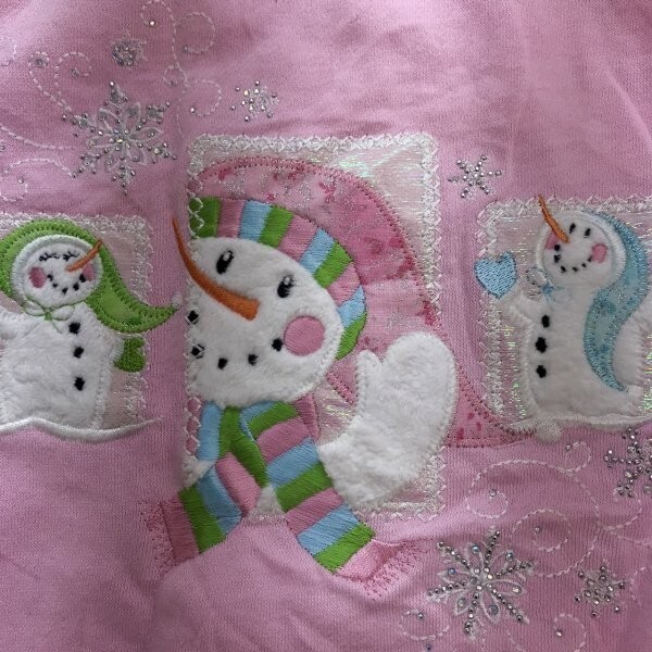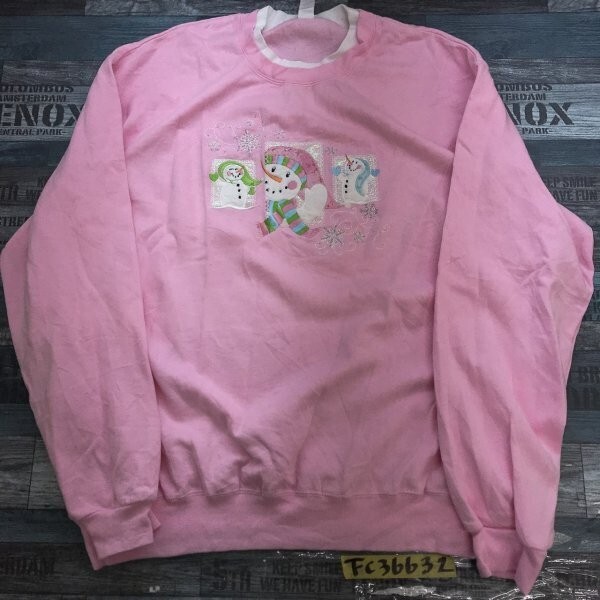 DECORATED ORIGINALS レディース 雪だるま刺繍 コットン混 裏起毛 ワッペン・レイヤード スウェットトレーナー 大きいサイズ XL ピンク です。