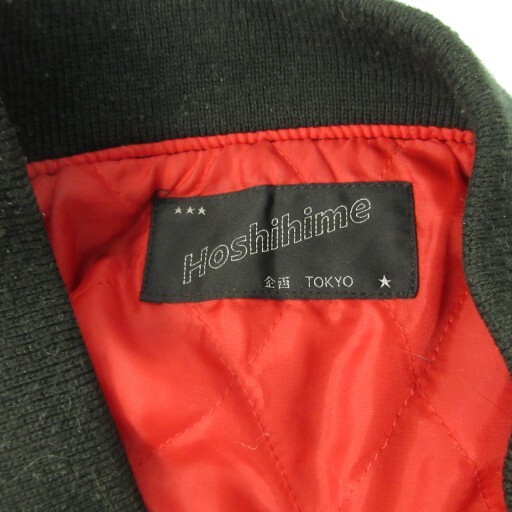 Hoshihime ホシヒメ スカジャン 中綿ジャケット 内キルティング 刺しゅう 顔虎 黒 ブラック F フリー メンズ