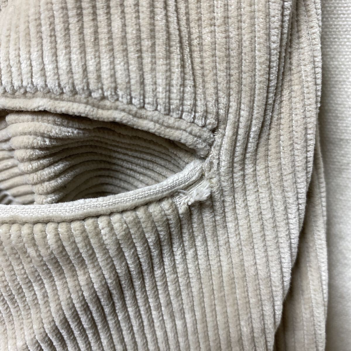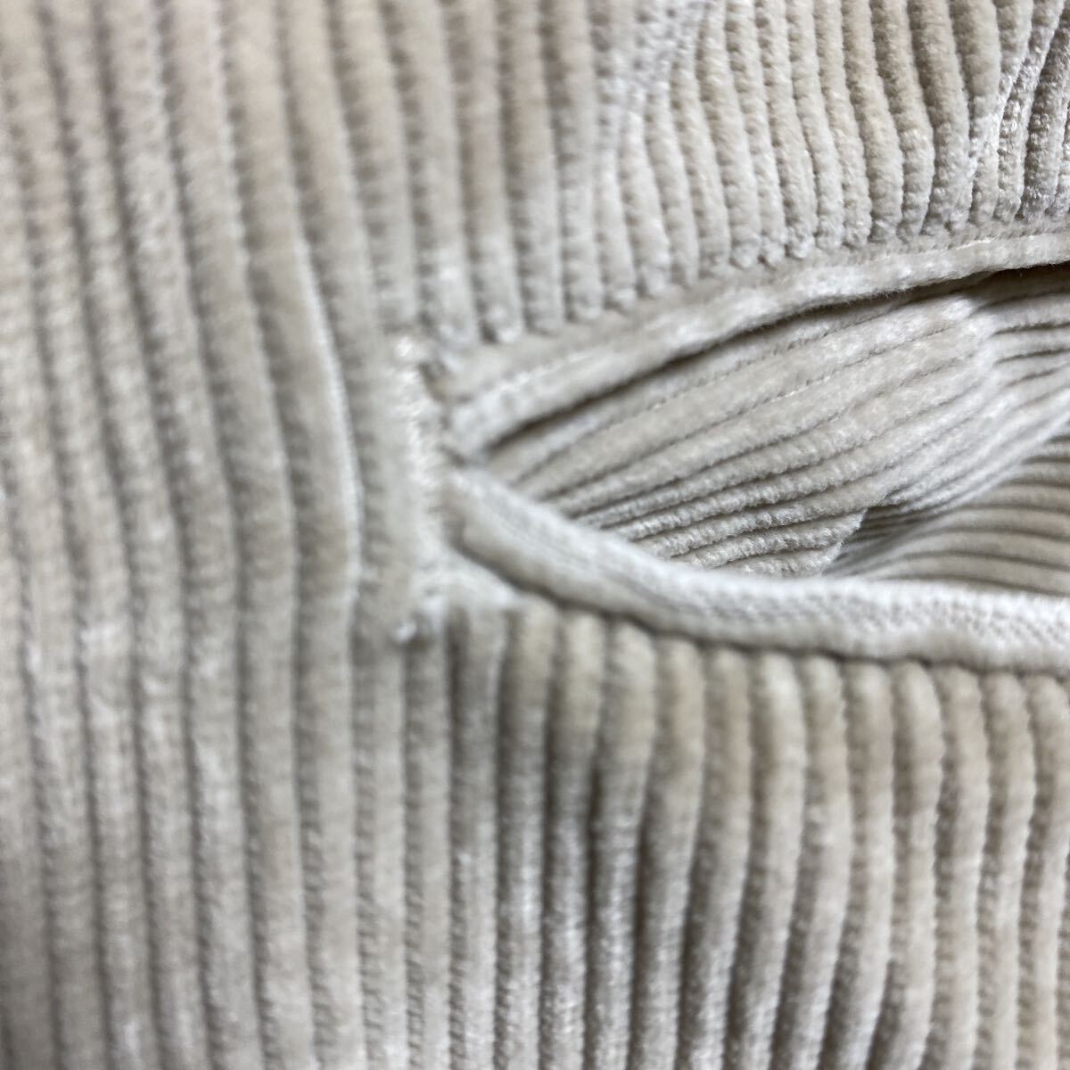 やや太めの畝のコーデュロイ生地でカラーは白っぽいライトベージュ
