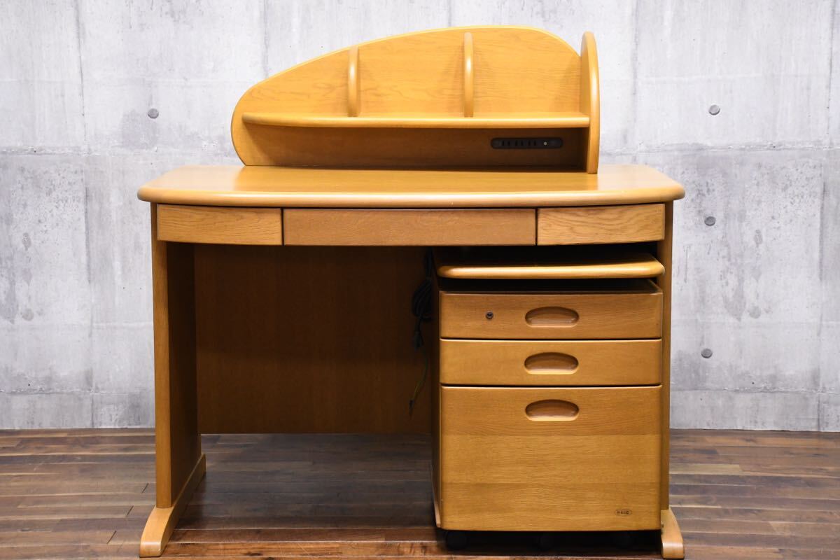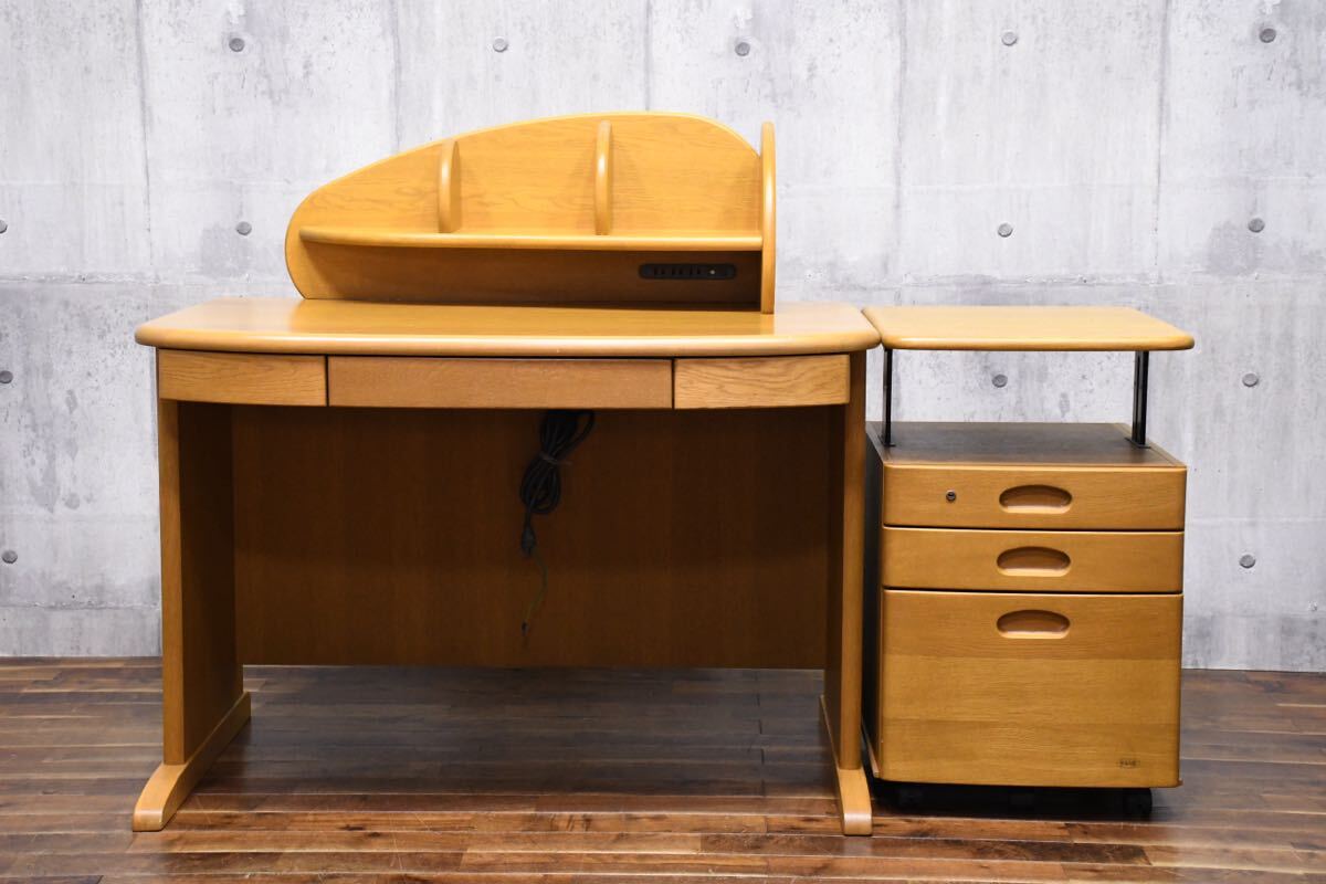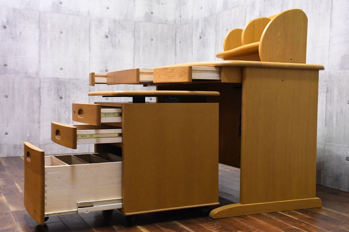 浜本工芸 デスク 本棚 昇降袖机 セット ナラ材 キャスターワゴン 学習机の出品です。