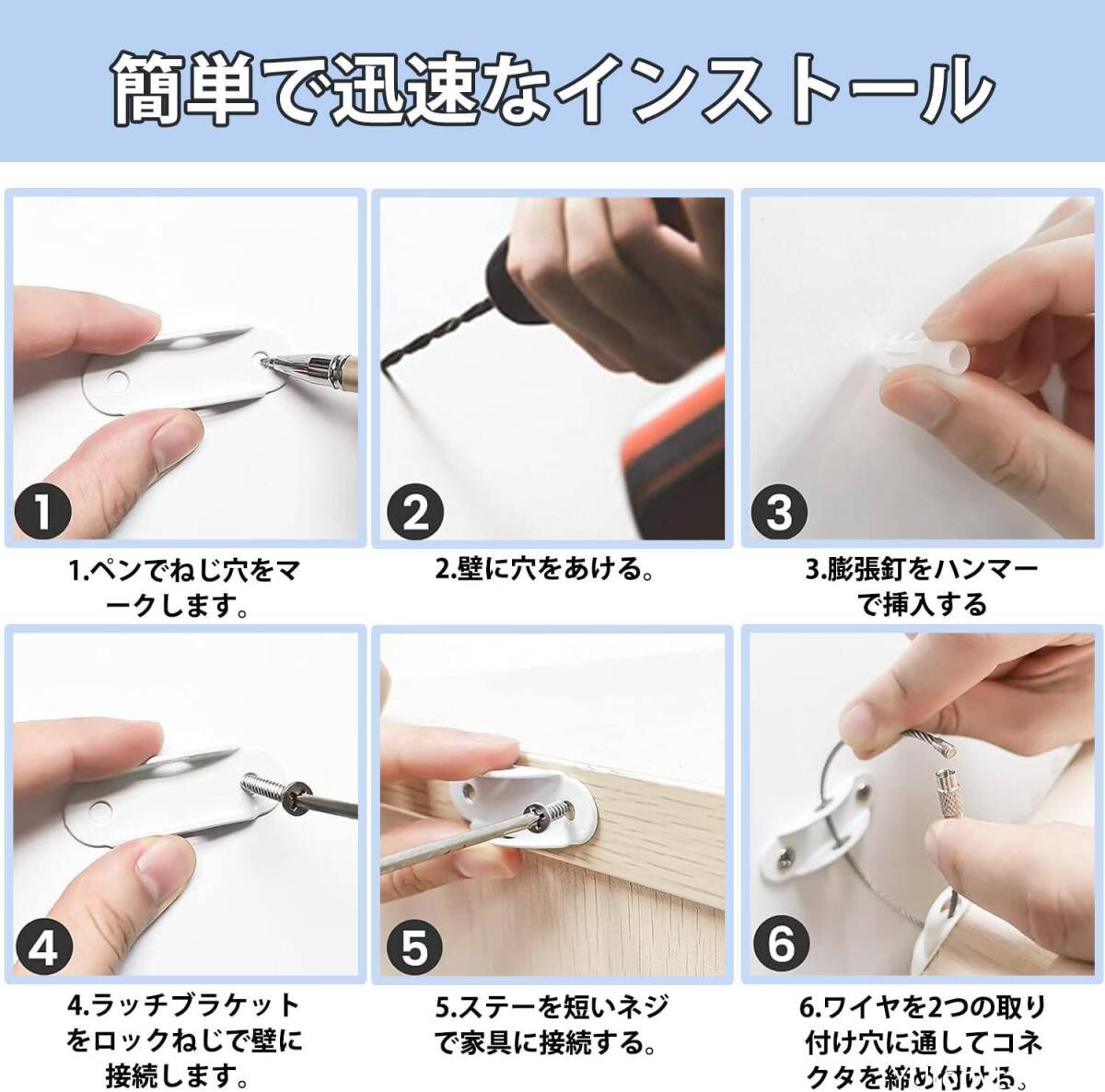 Acidea 10個 家具転倒防止グ 耐震金具 転倒防止 ワイヤー 地震対策ッズセット 調整可能 簡単取付 固定 アンカー 耐震