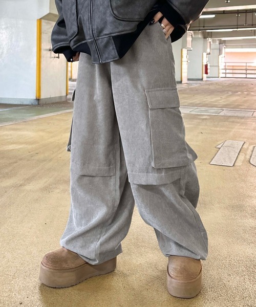 キーワード:カーゴパンツ メンズ ウエストゴム ハイウエスト フルレングス ワイドパンツ 無地 秋 冬