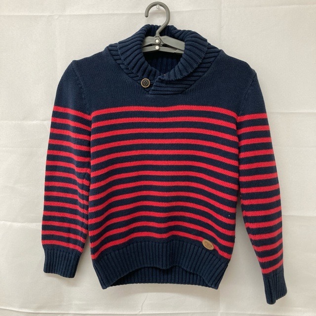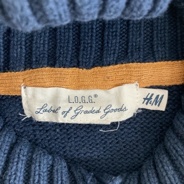 A1358 H&M 134/140 アメリカ古着 コットン ボーダー ニット セーター ネイビー H&M キッズ