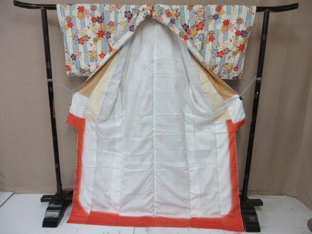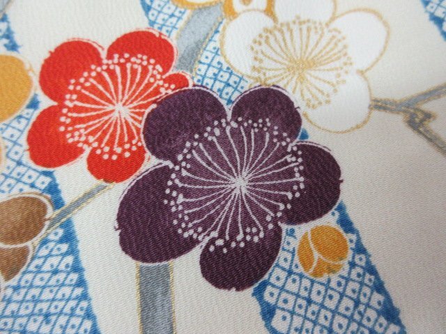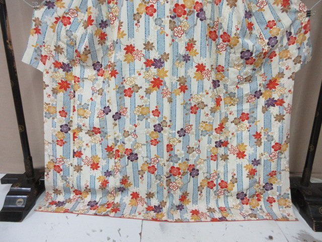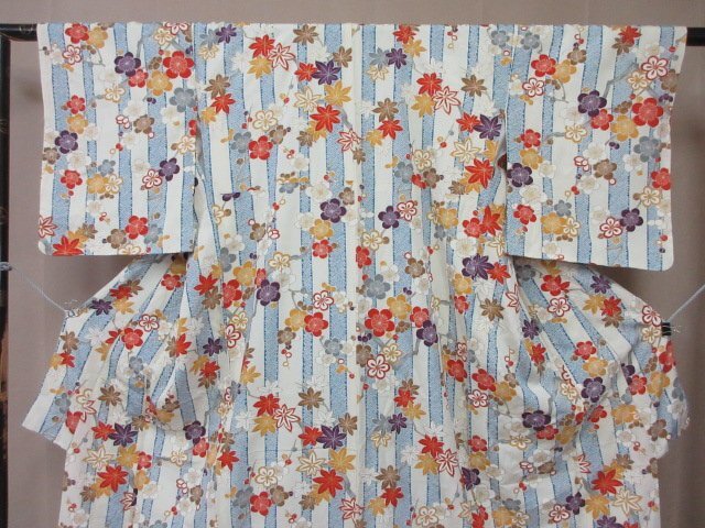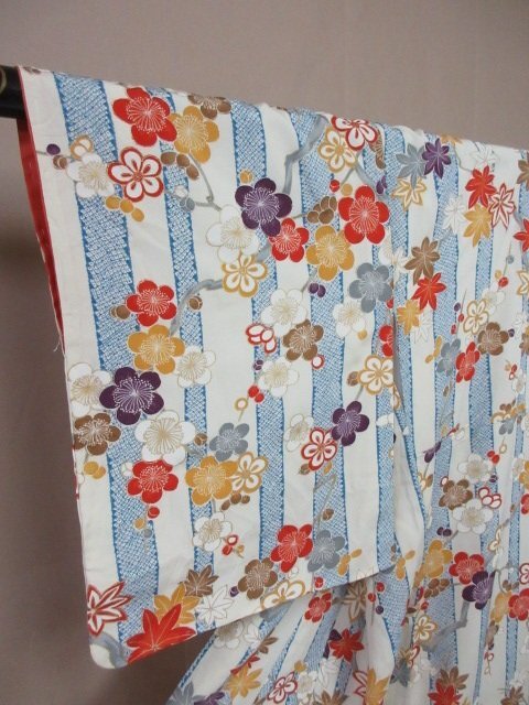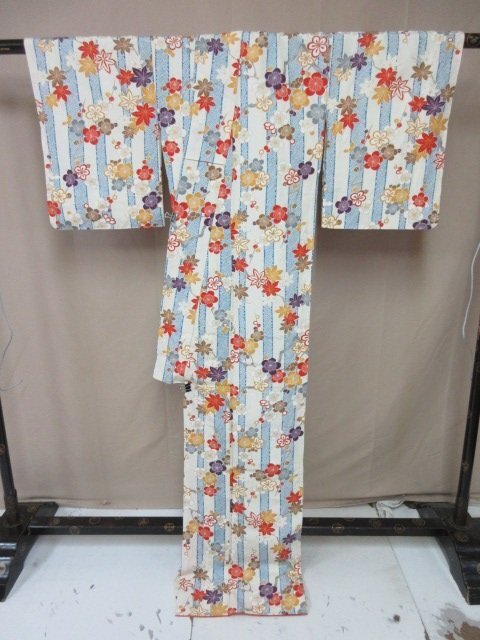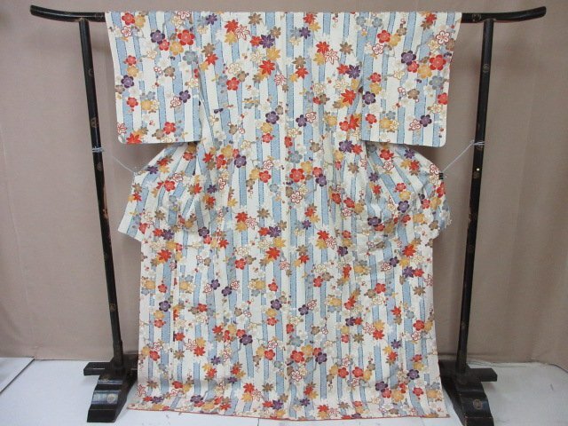 商品名 | 1円 良品 小紋 正絹 着物 縮緬 和装 和服 縞 鹿の子 草花 枝花 花柄 お洒落 高級 袷 身丈168cm 裄65cm【夢職】★ |