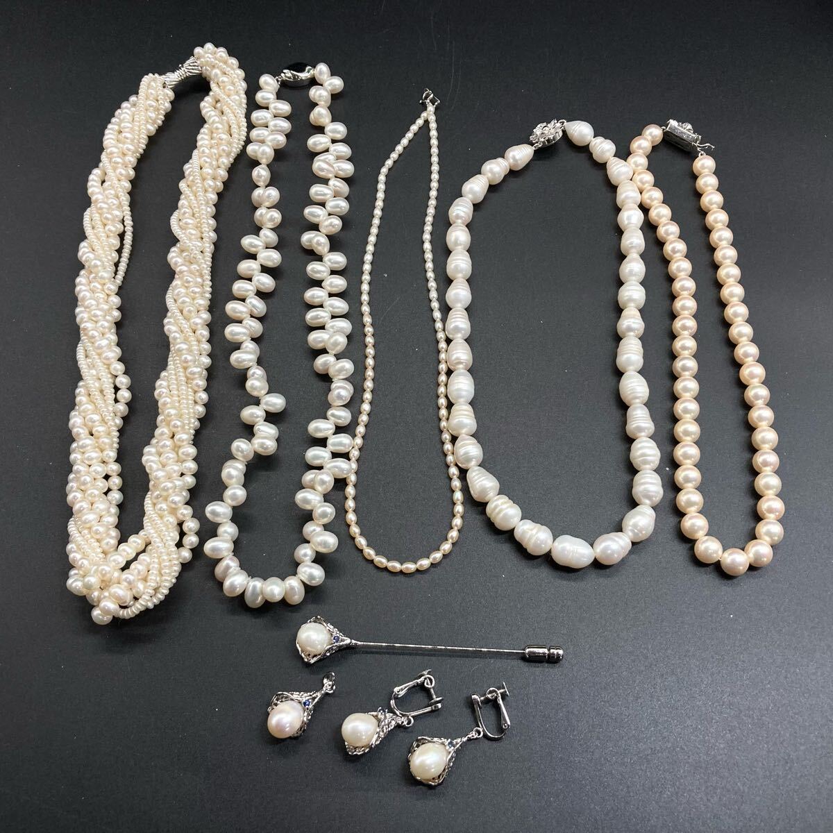 〈本真珠ネックレス4点/パールネックレス1点/アクセサリーおまとめ〉