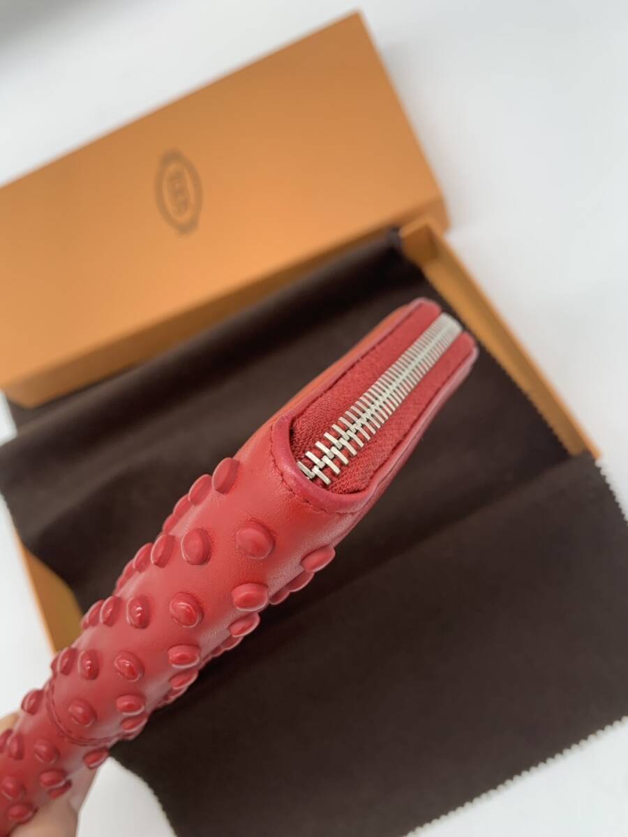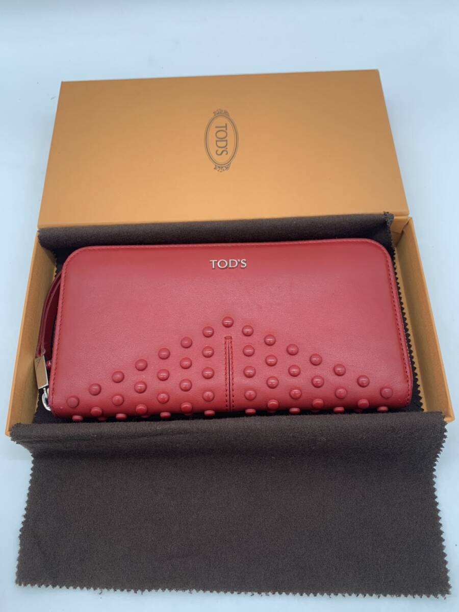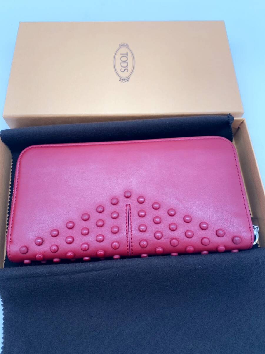 TOD’S トッズ 長財布 ラウンドファスナー スタッズ レザー ピンク