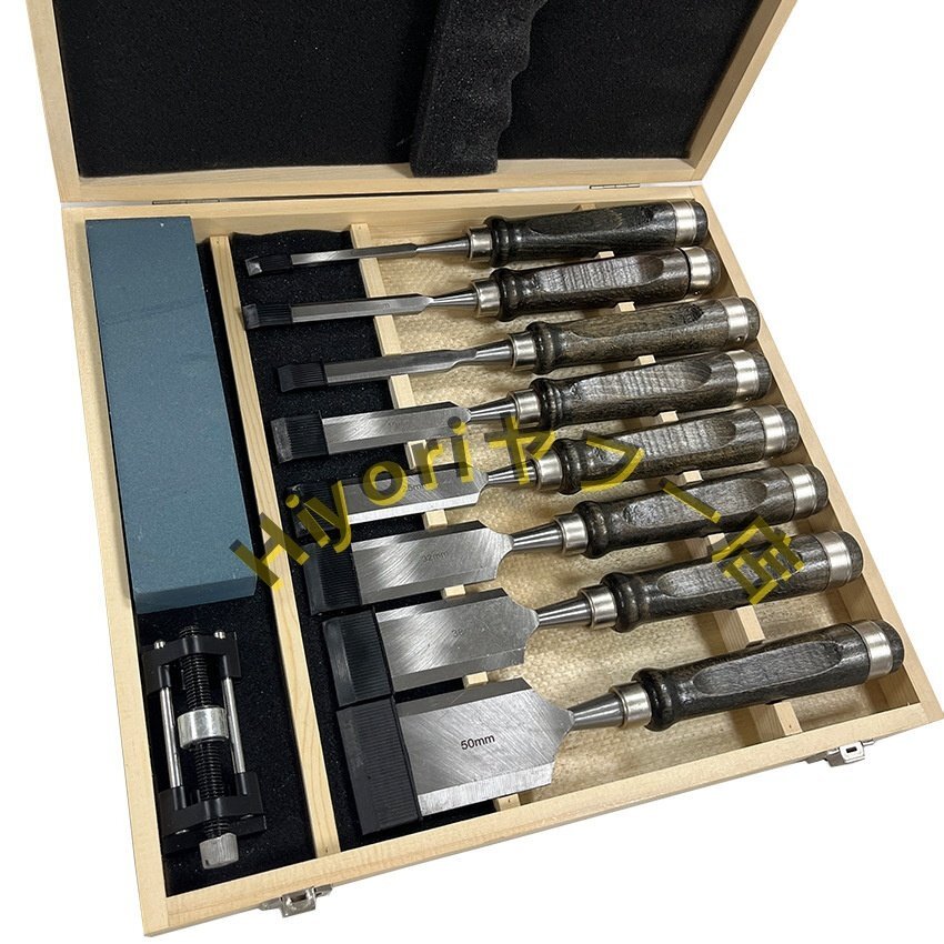 高品質木工DIY用ノミツール ブラックウォールナット専門セットには両面砥石修正ストーンビットが含まれています 高耐久平ノミ 8PCS