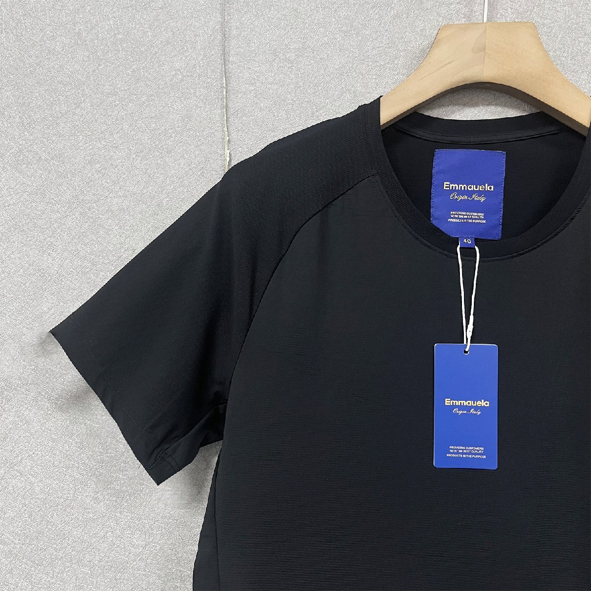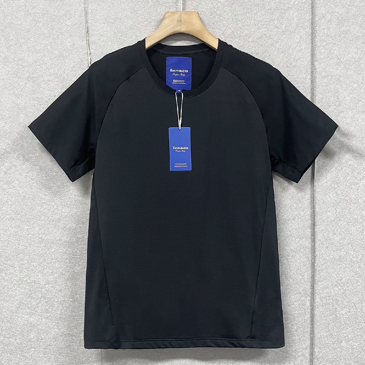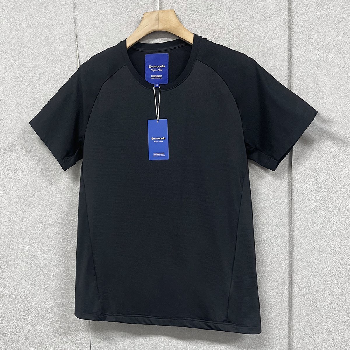 上級・半袖 Tシャツ 定価2万◆Emmauela・イタリア・ミラノ発◆シルク混 接触冷感 速乾 通気 無地 丸首 カジュアル スポーツ 夏 2XL/52サイ